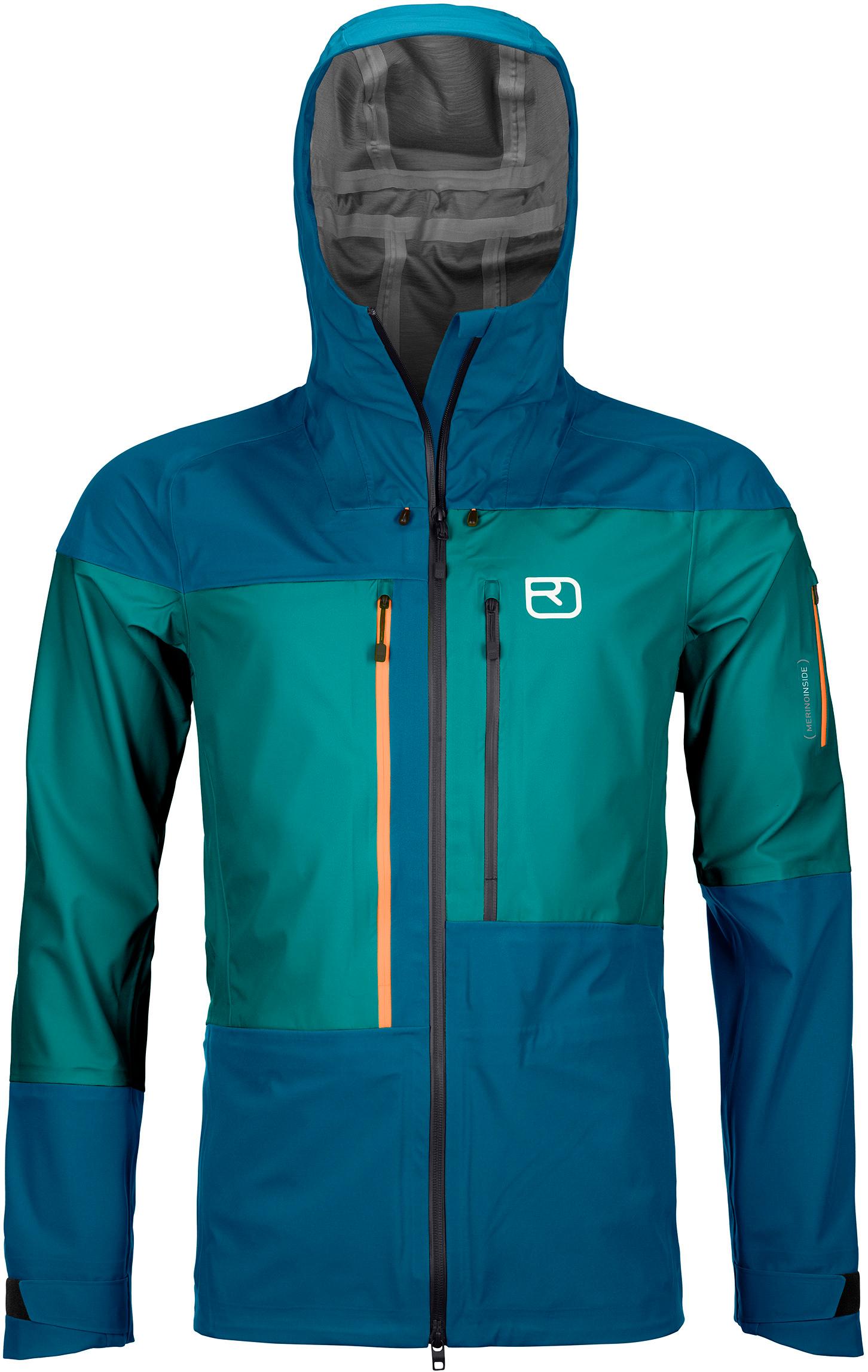 3-lagige Hardshelljacke mit Fels-Print, 2-Wege-Frontreißverschluss und Kinnschutz; wind- und wasserdicht dank Dermizax® EV-Membran; mindestens 20.000 mm Wassersäule; 4-Wege-Stretch-Material; 2-fach regulierbare, helmkompatible Sturmkapuze; 2 Fronttaschen, 1 Skipasstasche und 1 Innentasche; 2 Unterarm-Belüftungsreißverschlüsse; herausnehmbarer Schneefang; Ärmelabschlüsse und Saum weitenregulierbar; Futter aus Merinowolle; DWR-Beschichtung; Made in Europe, Fair-Wear-Produkt; Ortovox Wool Promise (OWP); ohne PFC hergestellt; Material 100% Polyamid, Membran 100% Polyurethan, Futter 100% Schurwolle.