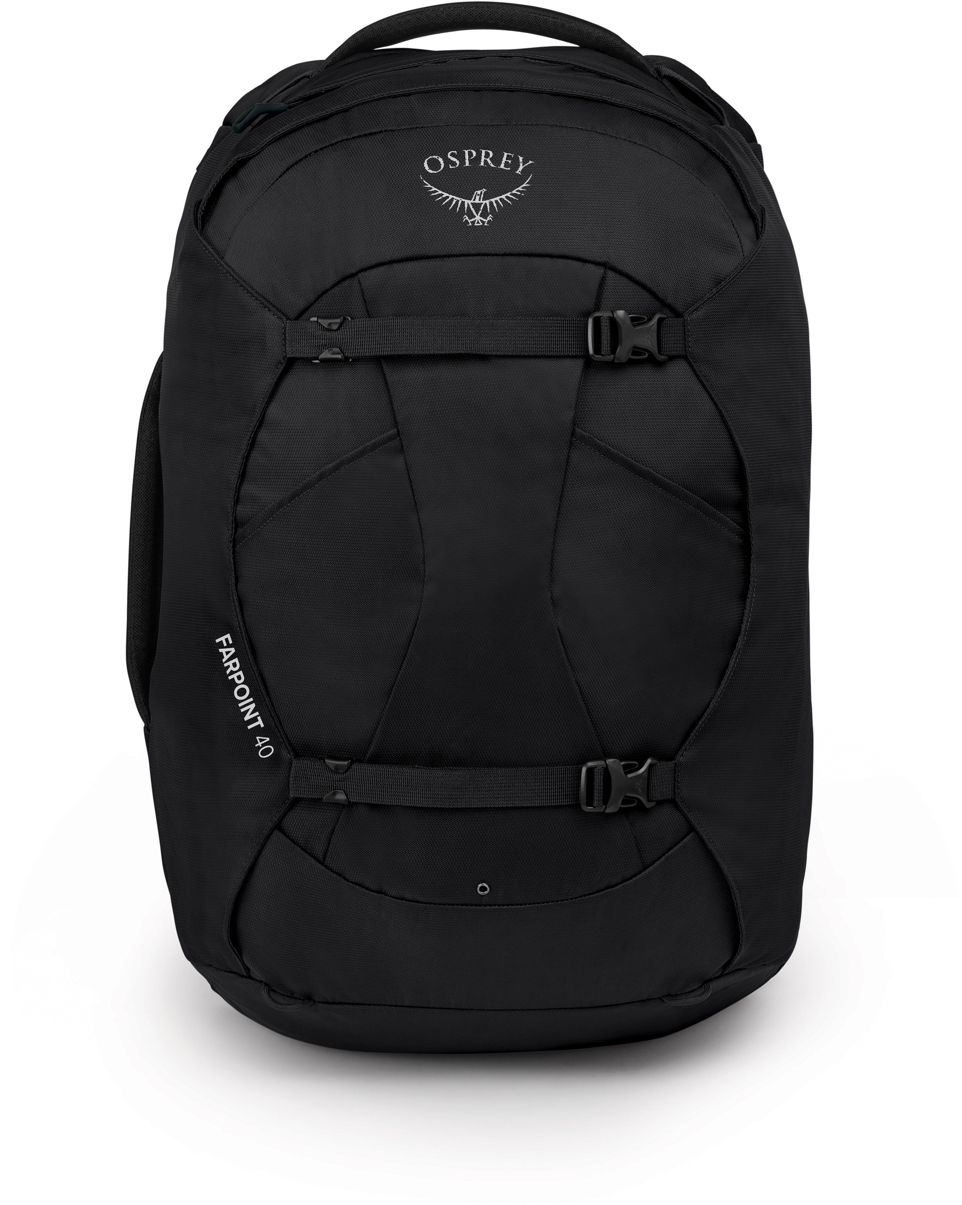 Handgepäcktauglicher Reiserucksack mit verstärkten Außenwänden; weit zu öffnendes und abschließbares Hauptfach, mit Innentasche aus Mesh und integrierten Halteriemen; internes Tabletfach; gepolstertes Laptopfach für Geräte bis zu 15,4“; Kontaktrücken mit abdeckbaren Trägersystem; Brustgurt mit Signalpfeife; Schnellverschlussschnallen an den Schultergurten zum Befestigen der Kofferrucksackmodelle Fairview 55, Farpoint 55 und Farpoint 70; Maße (H/B/T): ca. 54 x 35 x 23 cm; Gewicht: ca. 1440 g; Volumen: ca. 40 Liter.