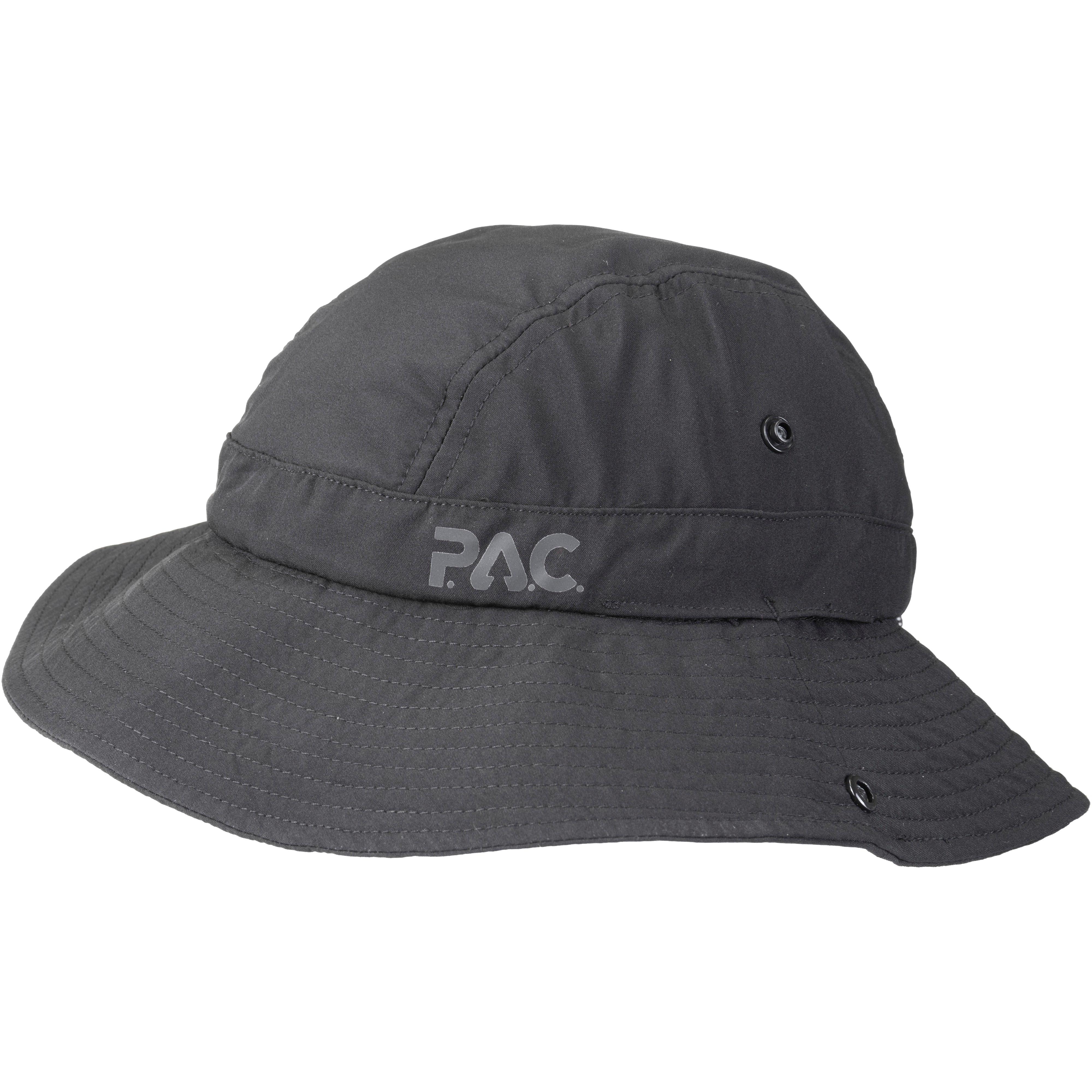 Hut mit verstellbaren und abnehmbaren Kinnband mit Stopper; UPF 50+; wasserabweisende, ohne PFC hergestellte Imprägnierung; Stopper im Kopfbereich zur individuellen Anpassung an den Kopf; Druckknöpfe an den Seiten, zum hochnehmen der Hutkrempe; Schweißband und Futter aus atmungsaktivem Mesh; Material 100% Polyester (recycelt).