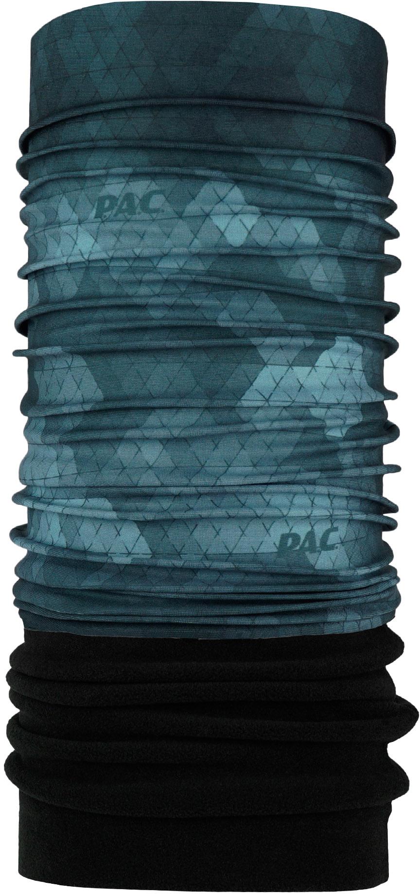 Vielseitig tragbares Multifunktionstuch aus nathlosem Recyclingmaterial; hoher Feuchtigkeitstransport; geruchshemmende Funktion; atmungsaktiv und schnelltrocknend; wärmender Fleeceteil; Made in Germany; Material 100% Polyester (recycelt).