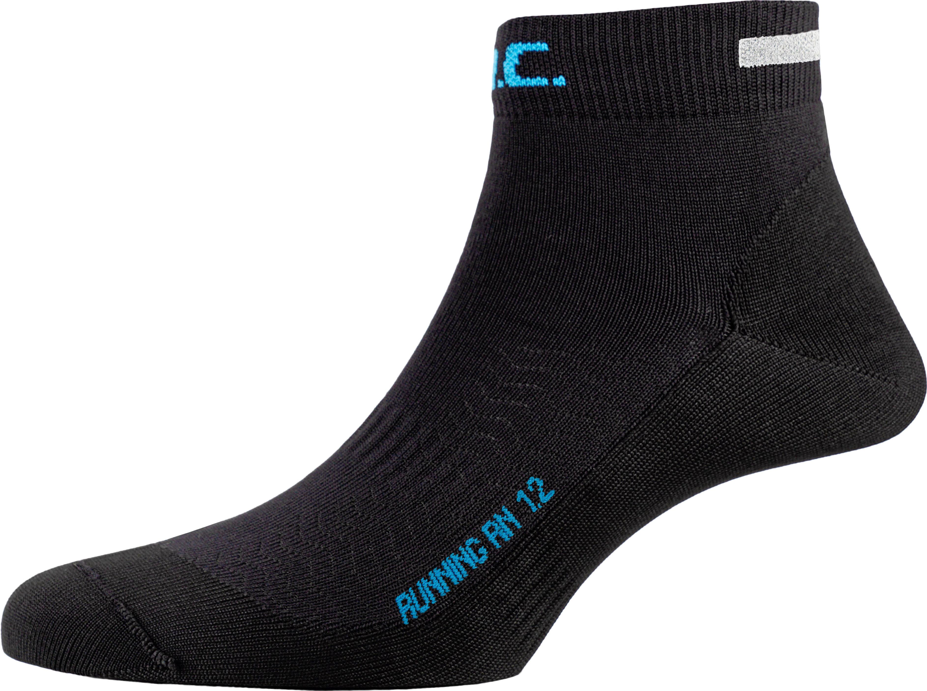 Laufsocken mit mit High-Performance Dryarn®; sehr atmungsaktiv und schnelltrocknend durch belüftende Kanäle; elastisches, knöchelhohes Bündchen; Kompressionen im Mittelfußbereich für haltgebende Passform; idealer Schnitt gegen Blasenbildung an der Ferse; mit reflektierendem Detail; Material 63% Polyamid (recycelt), 35% Polypropylene, 2% Elastan; mit Recyclingmaterial hergestellt.