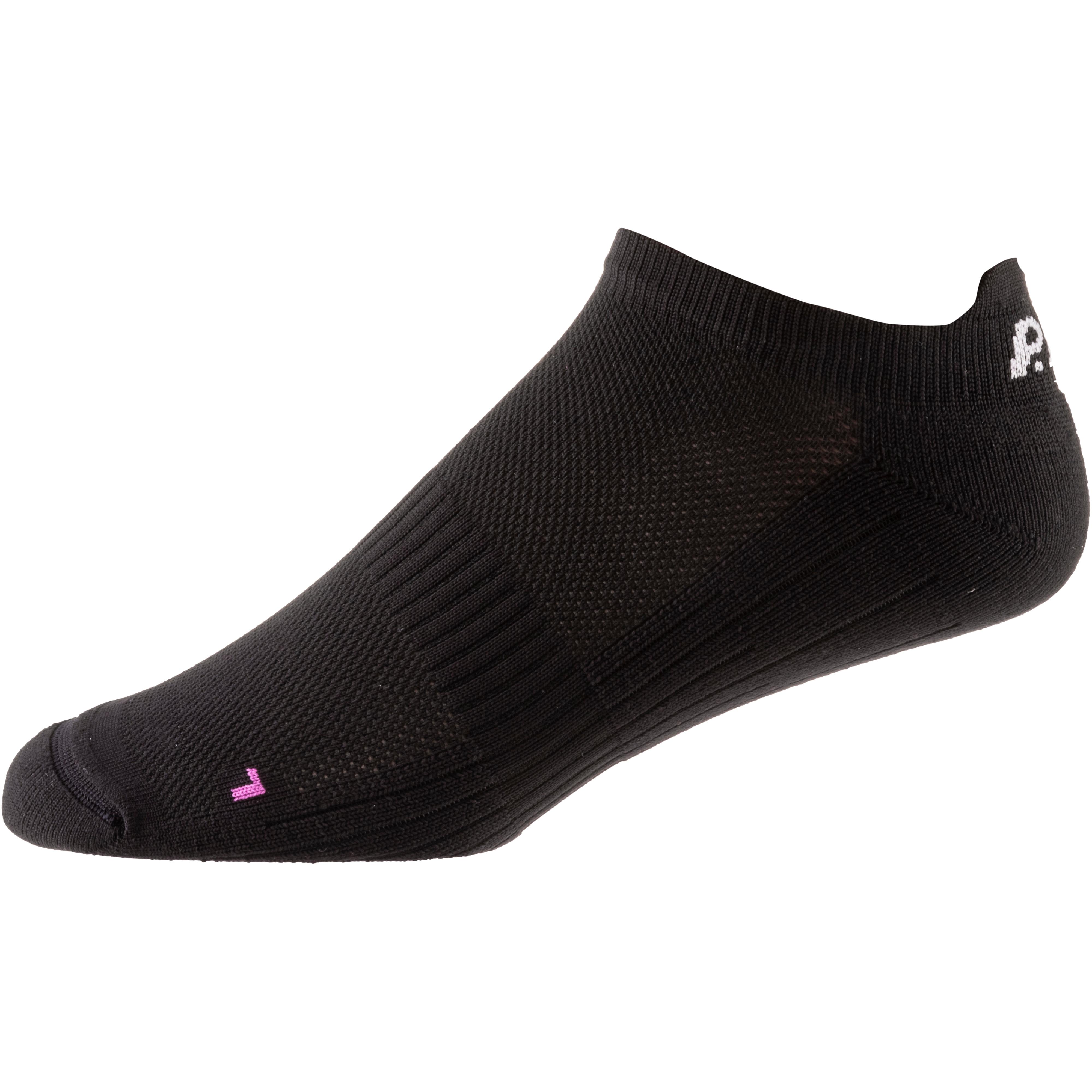 Elastische, funktionelle, kurze Sportsocke; anatomisch auf Damen abgestimmt; Flip zum Halt der Socke; Komfortbündchen; Mittelfußkompression für extra viel Halt; Strickversärkungen in den Problemzonen zur Druckentlastung; flexible Channels für perfekt Passform; reibungsarme Nähte; Material 98% Polyamid, 2% Elastan.