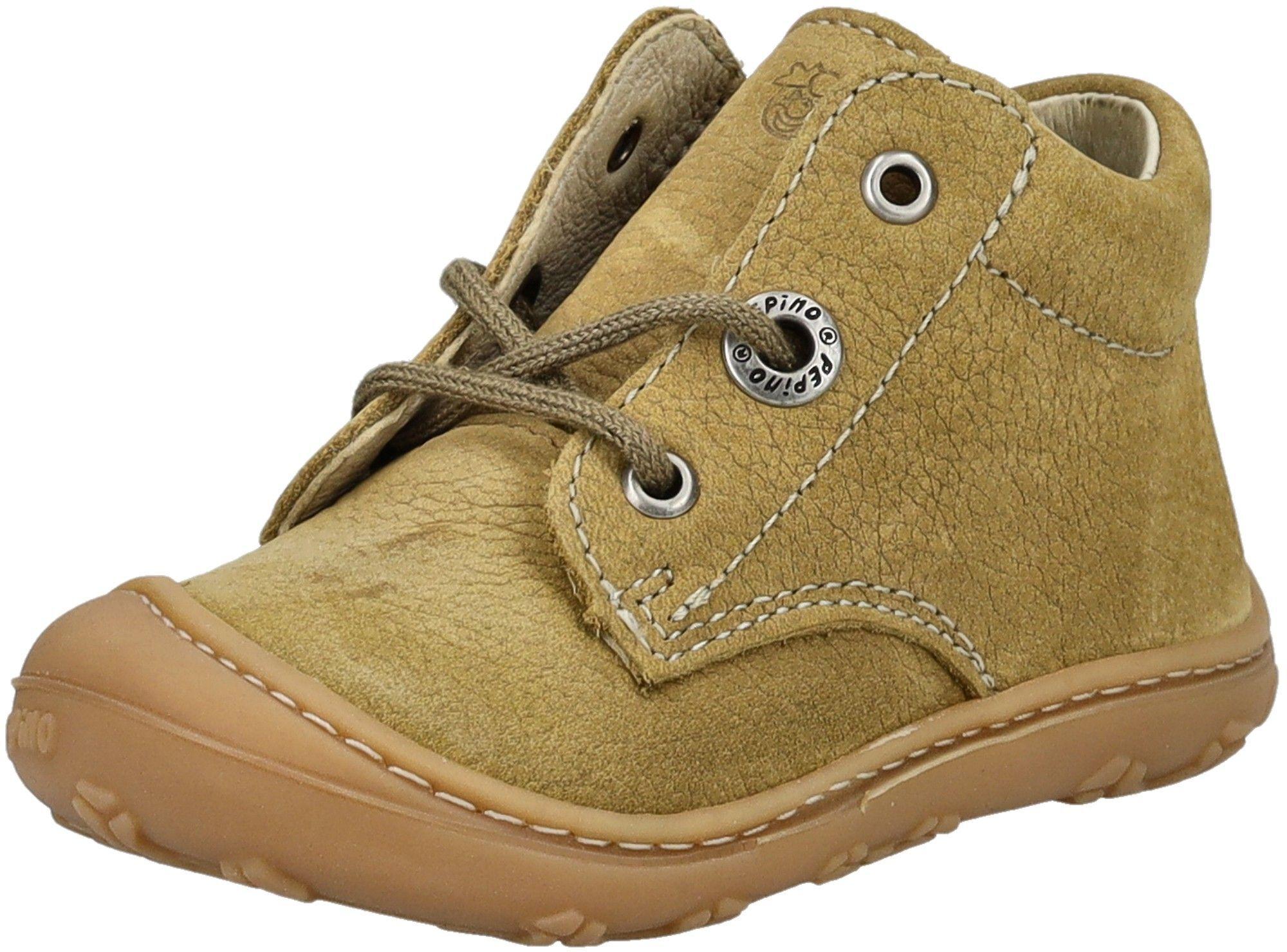 Dieser bezaubernde Lauflernschuh von Pepino ist ein wahres Allroundtalent für kleine, heranwachsende Kinderfüßchen. Das Obermaterial und Innenfutter besteht aus hochwertigem, atmungsaktivem und flexiblem Leder, das sich optimal anpasst und Feuchtigkeit absorbiert. Die flexible Sohle aus rutschhemmendem Naturkautschuk geht mit jedem Schritt mit und bietet selbst bei unsicherem Gehen einen optimalen Komfort. Die verstärkte Zehen- und Fersenpartie bietet Halt und Schutz vor Stößen. Die herausnehmbare Decksohle besteht ebenfalls aus Leder und ist mit einem bequemen Fersenpolster versehen.
