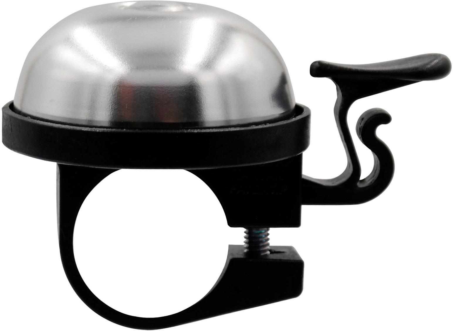 Silberfarbene Midi-Glocke „Eco“ aus Aluminium und Kunststoff; Größe: ca. 40 mm; passend für Lenker-Ø: ca. 22,2 mm.