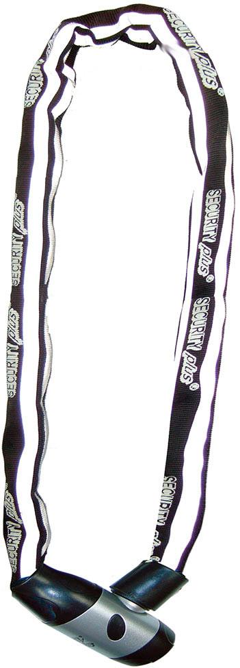 Reflex-Fahrrad-Kettenschloss Security® plus mit 6 mm-Kettengliedern; Gewebecover mit Reflex-Streifen; 360°drehbarer Schlosskopf; mit 2 Wendeschlüsseln; extra lang; Länge: ca. 140 cm.