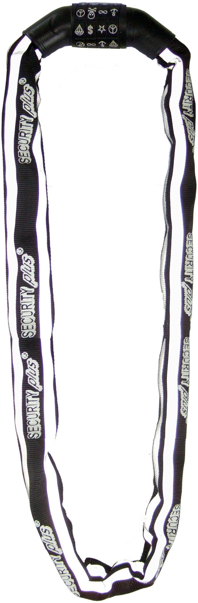 Fahrradkette mit Textilummantelung; Schloss mit 4-stelligem Symbol-Code; Kettenglieder aus gehärtetem Stahl mit einem Durchmesser von 6 mm; Länge: ca. 140 cm; reflektierende Elemente.