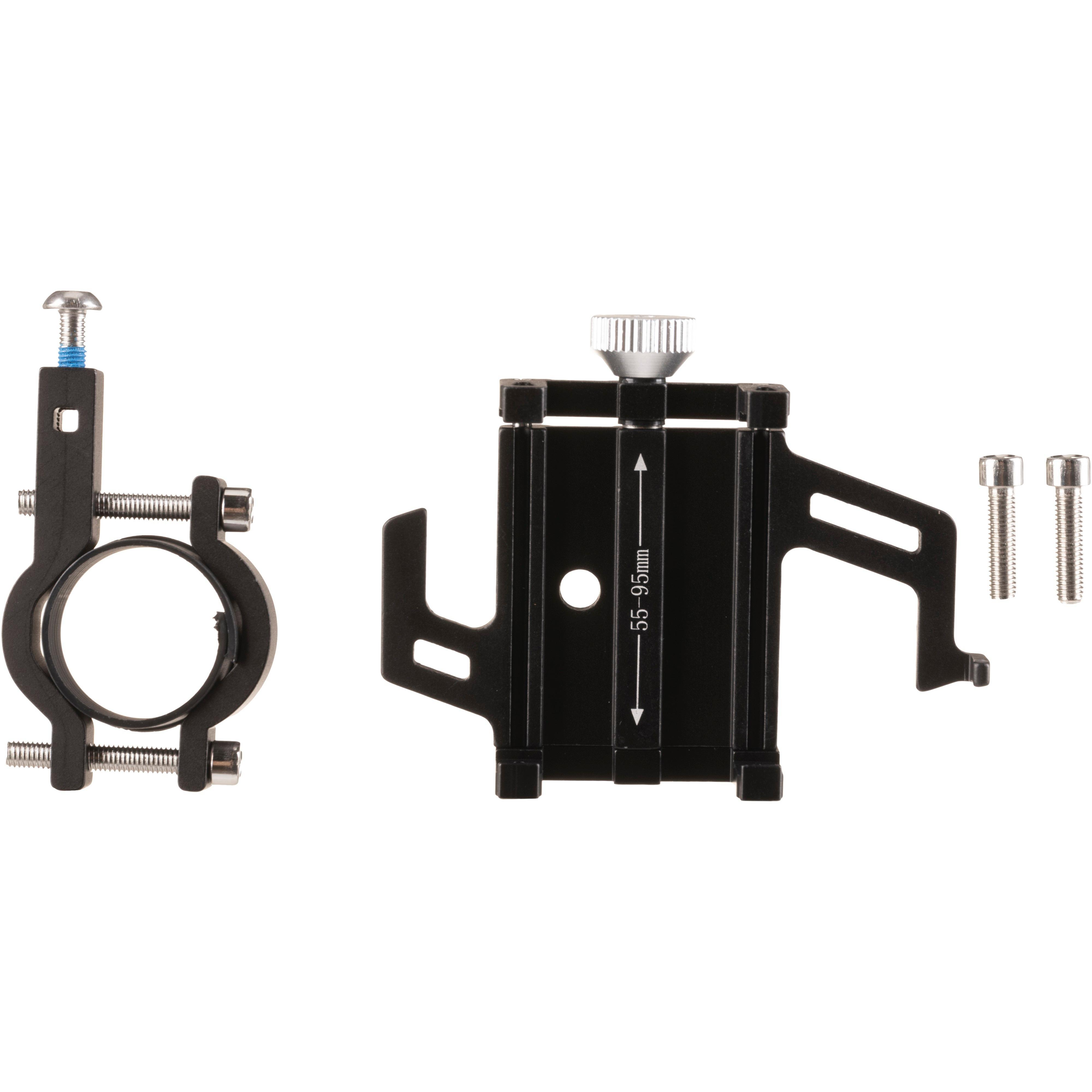 Fahrradhalterung für Smartphones, mit wasser-und kratzfesten Eigenschaften; waagerechte oder vertikale Ausrichtung des Handys; werkzeuglose Montage, Befestigung mit Drehknopfsystem; Lenkerdurchmesser von 22,2 mm/ 25,4 mm bis 31,8 mm; Material 100% Aluminium.
