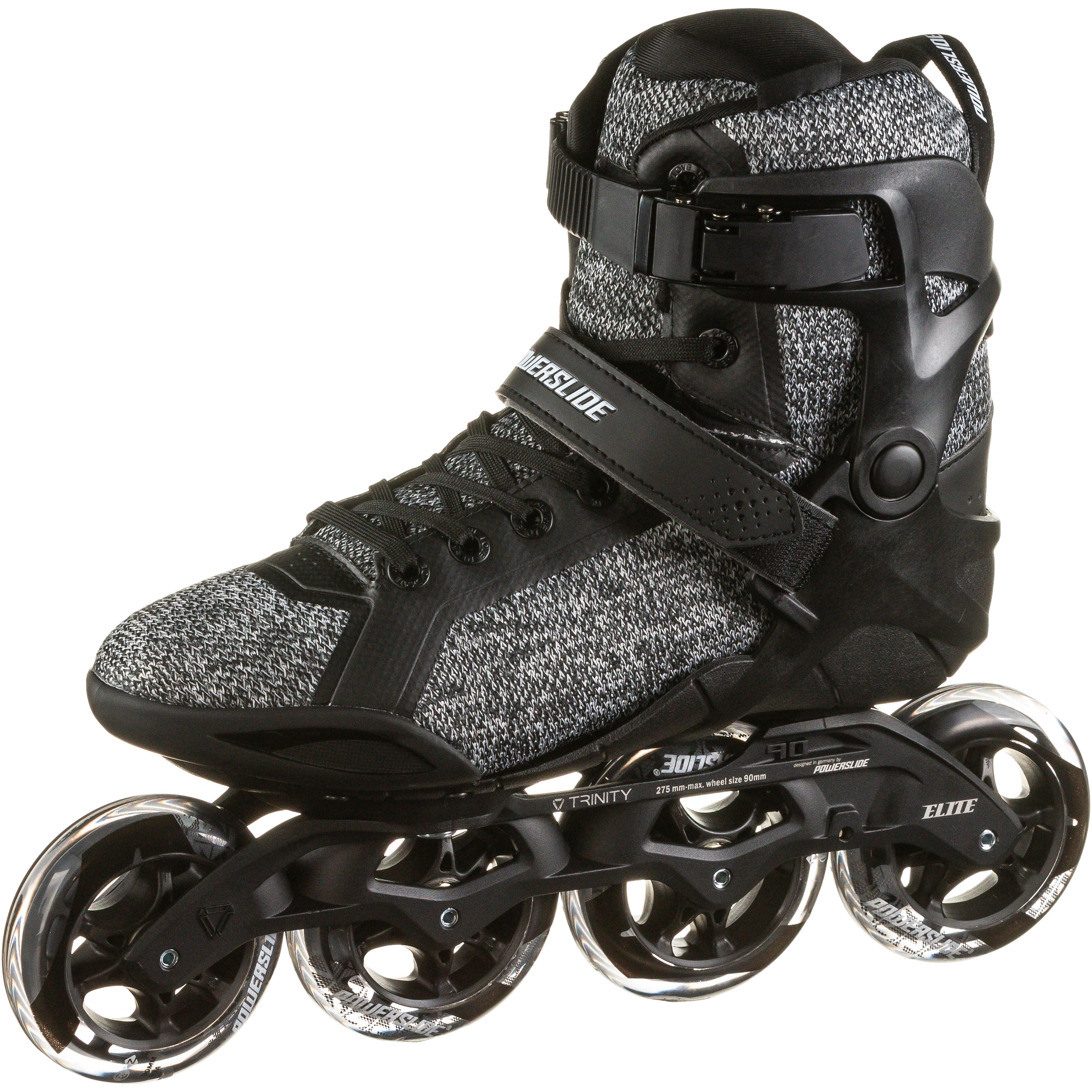 POWERSLIDE ENZO 90. Fitness Skates mit 4 Rollen (90 mm Durchmesser); ABEC-7 Kugellager; Rollenhärte: 83A; Schnürsenkel; Powerstrap; Mikro-einstellbare Schnalle; anatomisch geformte Innenschuhe; Trinity-Schiene aus Aluminium; Height Adjustable Brake System.