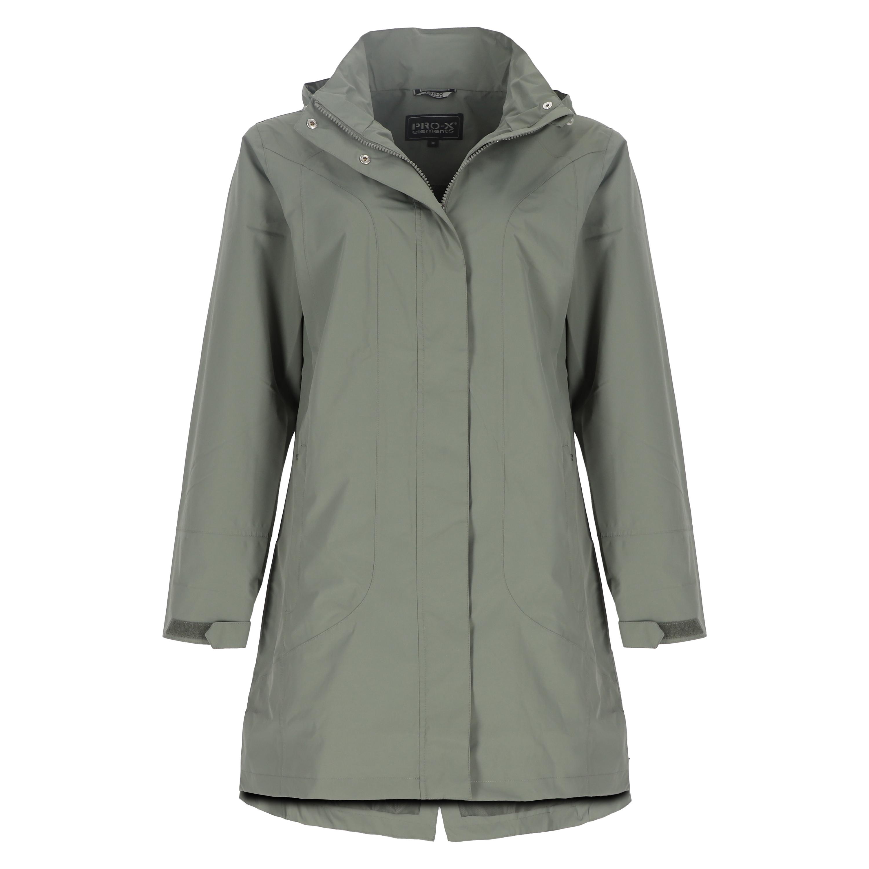 Atmungsaktiver Damen-Mantel aus PXE-PRO. Durchgehender 2-Wege-Front-RV mit Überpatte. 2 abgedeckte RV-Seitentaschen. Innentasche. Verstellbare Schirmkapuze, abknöpfbar. Verstellbare Armabschlüsse. Smartphone-Tasche. Etwas länger (2,5 cm) als Model 5180 Jenna. Gewicht in Gr. 38 = 470 g.