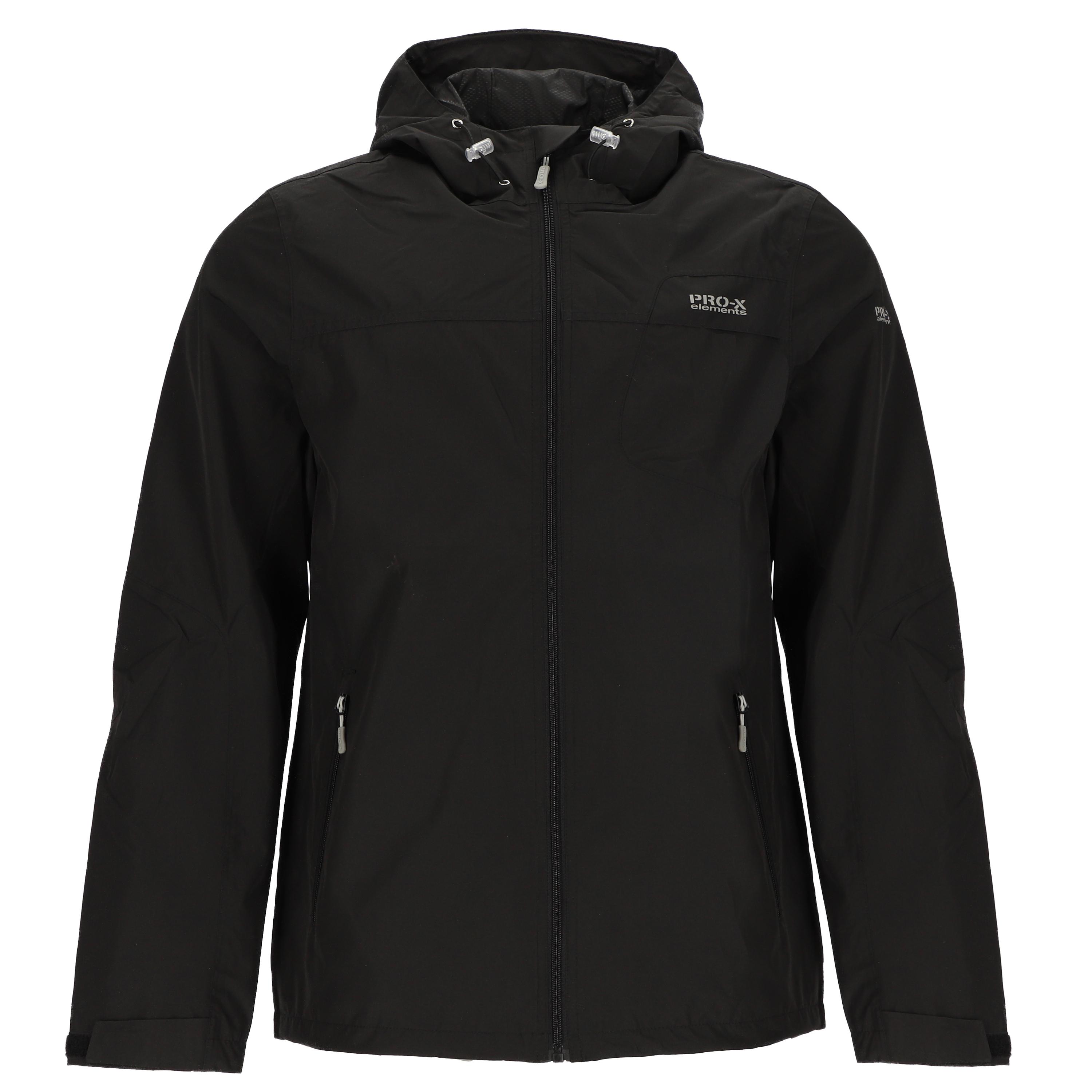 Atmungsaktive Herrenjacke aus PXE LIGHT. Durchgehender, unterlegter Front-RV. Angeschnittene, verstellbare Schirmkapuze. 2 Seitentaschen mit integrierter Packtasche. Verstellbare Armabschlüsse. Smartphone-Tasche. Gewicht in Gr. L = 460 g.