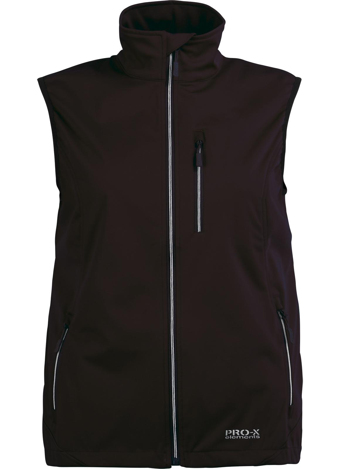 Atmungsaktive Damen-Softshellweste mit PXE Windschutzmembran. Durchgehender unterlegter Front-RV. 2 RV-Seitentaschen, 1 Brusttasche. Gewicht in Gr. 38 = 230 g. Rückenlänge in Gr. 38 = 65 cm.