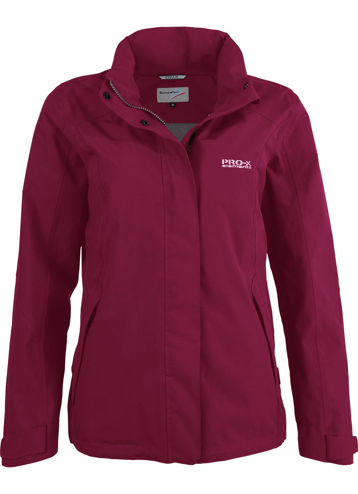 Damenjacke mit SympaTex® Membran. Durchgehender 2-Wege-Front-RV mit Über- und Unterpatte. 2 abgedeckte RV-Seitentaschen, Brusttasche als Packtasche. Verstellbare Armabschlüsse. Abnehmbare Schirmkapuze im Kragen. Smartphone-Tasche. Gewicht in Gr. 38 = 500 g. Rückenlänge in Gr. 38 = 68 cm.