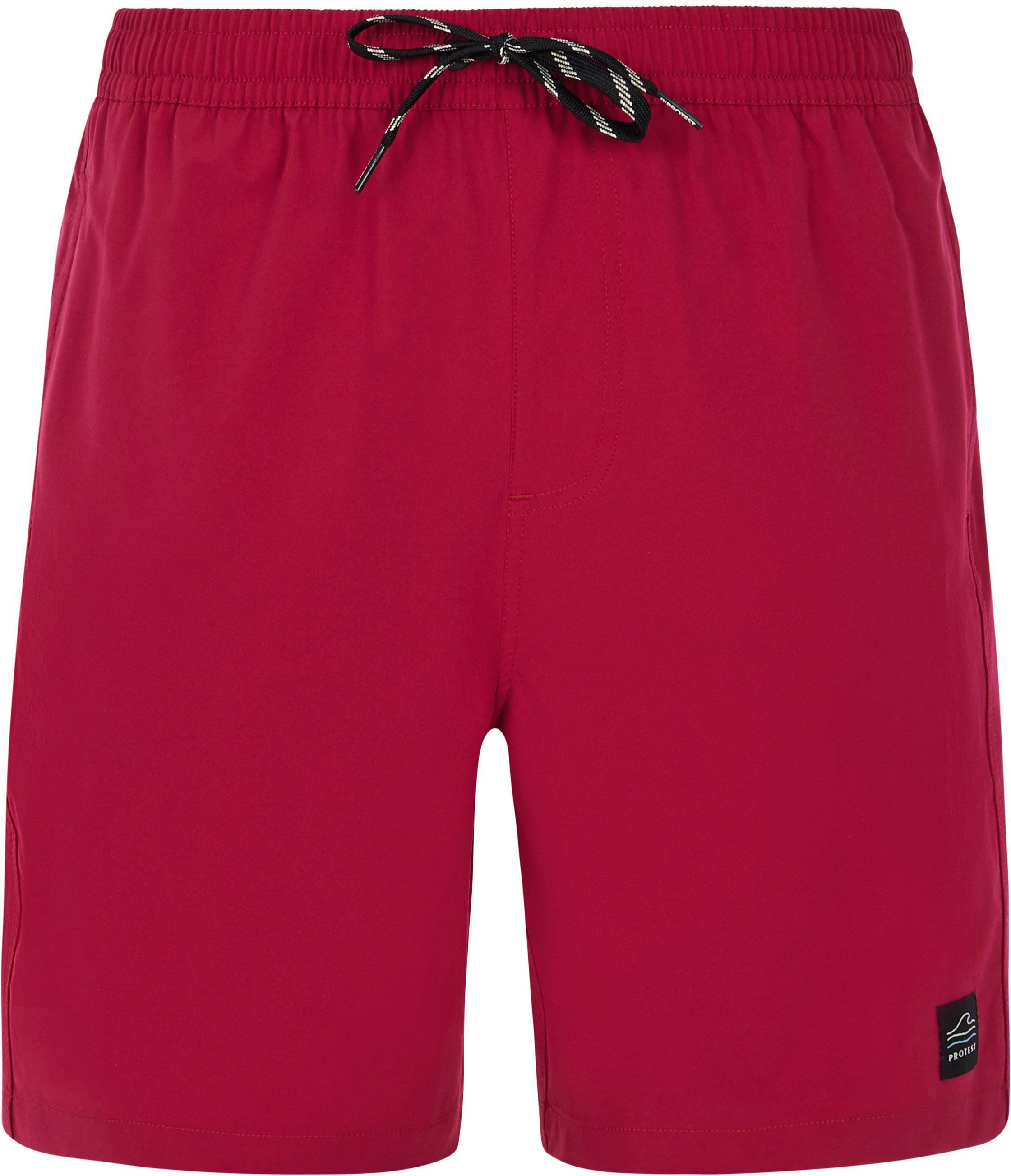 Badeshorts in unifarbenem Design; elastischer Bund mit Kordelzug; 2 Seitentaschen; mit integriertem Innenslip; Material 100% Polyester.