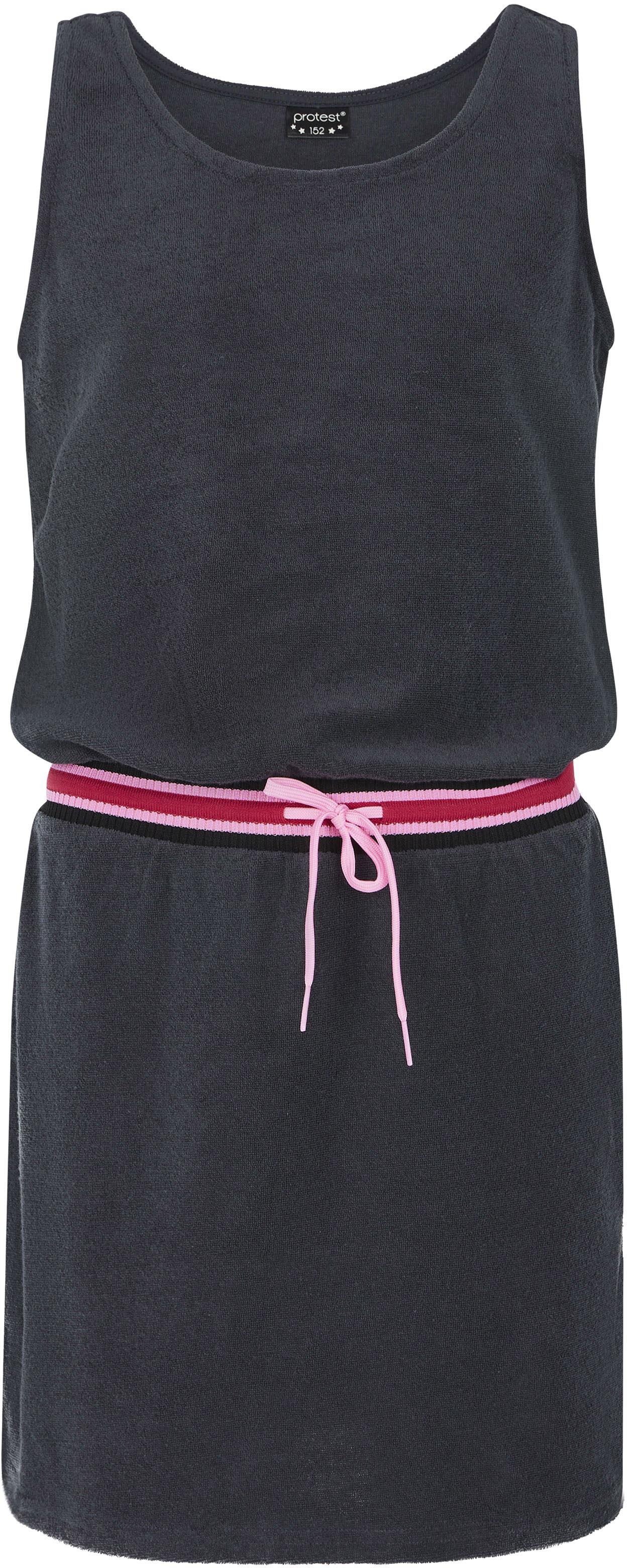 Kurzes Trägerkleid mit Rundhalsausschnitt; kontrastfarbener Gummizug mit Kordelzug in der Taille; lockere Passform; Material 78% Baumwolle, 22% Polyester.