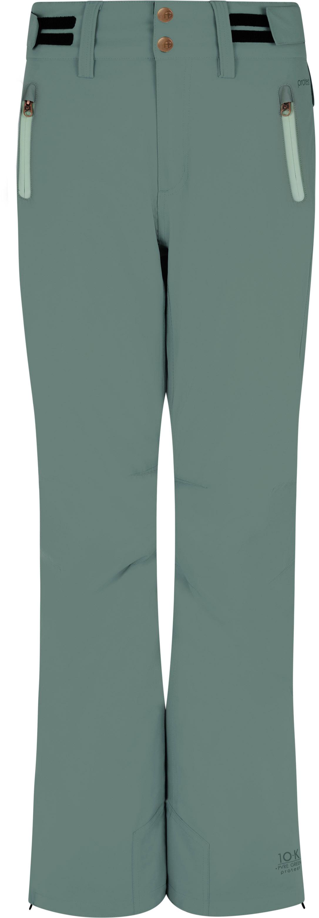 Ski- und Snowboardhose mit leicht ausgestellter Beinform und regulärer Passform; wasserabweisendes, ohne PFC hergestelltes Finish; verklebte Nähte an kritischen Stellen; teilelastischer, verstellbarer Bund; Druckknopfverschluss; Gürtelschlaufen; Seitentaschen mit Reißverschluss und Zippgarage; Reißverschluss am Saum; integrierte Gamaschen mit Silikon für einen rutschfesten Sitz; aus Recyclingmaterial im Rahmen der PVRE Green Serie hergestellt; Obermaterial, Isolierung und Futter 100% Polyester.