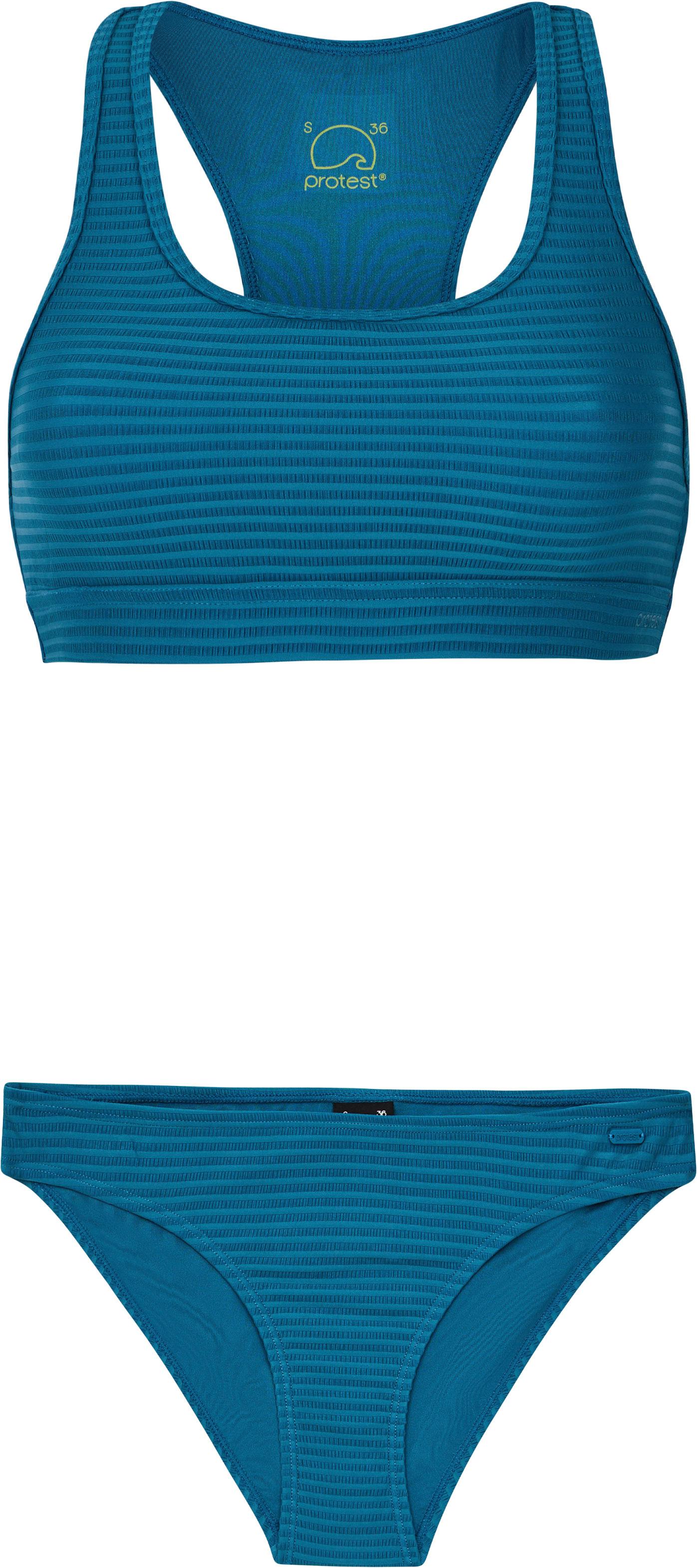 Sportliches Bikini-Set aus strukturiertem Material; Bustier-Oberteil mit Rundhalsausschnitt, Unterbrustband, herausnehmbaren, schnelltrocknenden Pads und Ringerrücken; Hose in Slip-Form; ohne PFC hergestellt; Material 83% Polyamid, 17% Elastan.