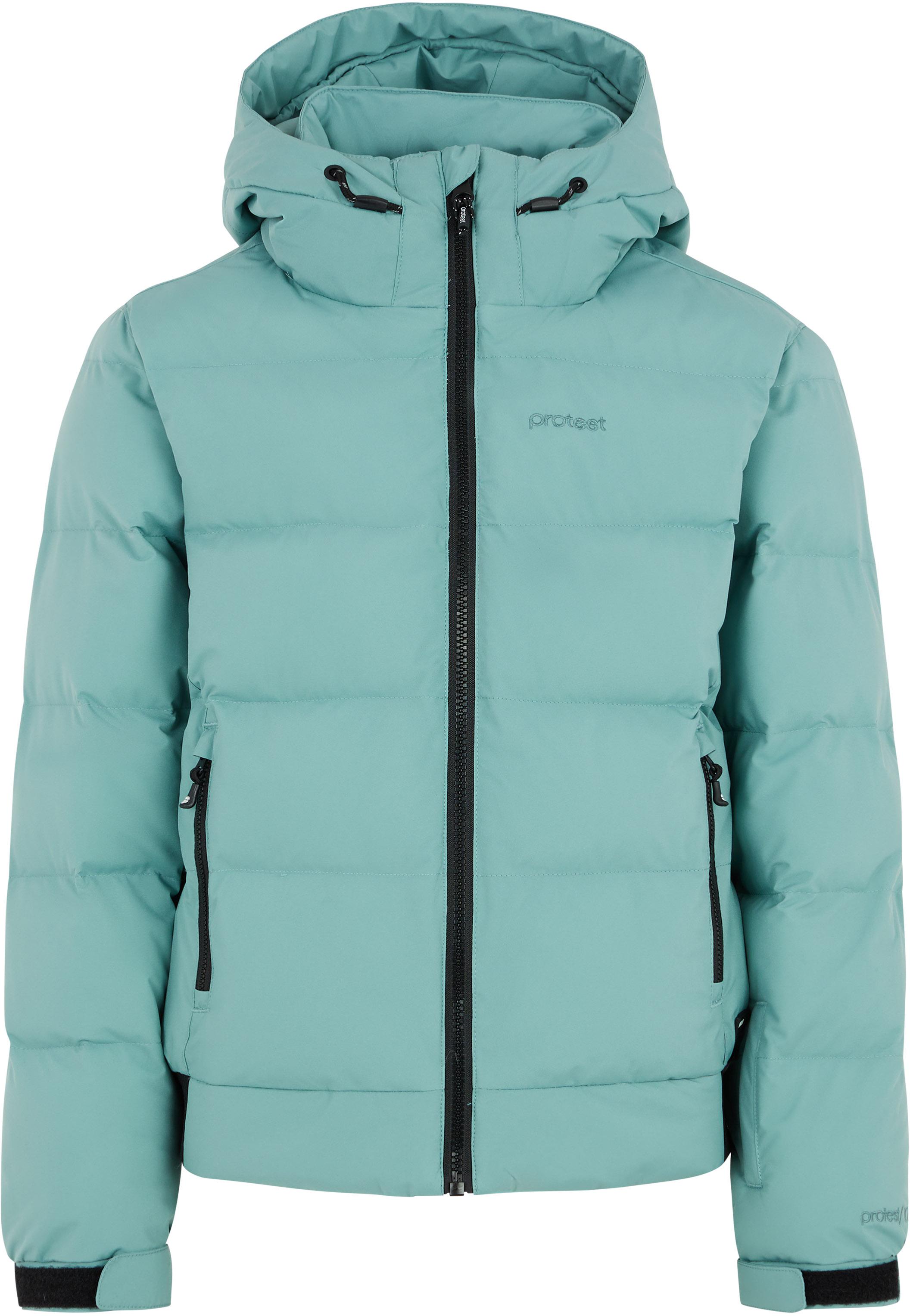 Schneejacke für Mädchen, ideal zum Skifahren und Snowboarden; wasserdichtes, atmungsaktives Obermaterial; Kapuze mit Tunnelzug; unterlegter Reißverschluss mit Kinnschutz; Logodetail auf Brusthöhe; seitliche Eingrifftaschen mit Reißverschluss; Liftpasstasche am Ärmel; teilelastische Ärmelabschlüsse mit Klettriegeln; integrierte, elastische Bündchen mit Daumenlöchern; Schneefang; wärmende Kunstfaser-Isolierung; normale Passform; ohne PFC hergestellt; Wassersäule: 10.000 mm; Material 100% Polyester.