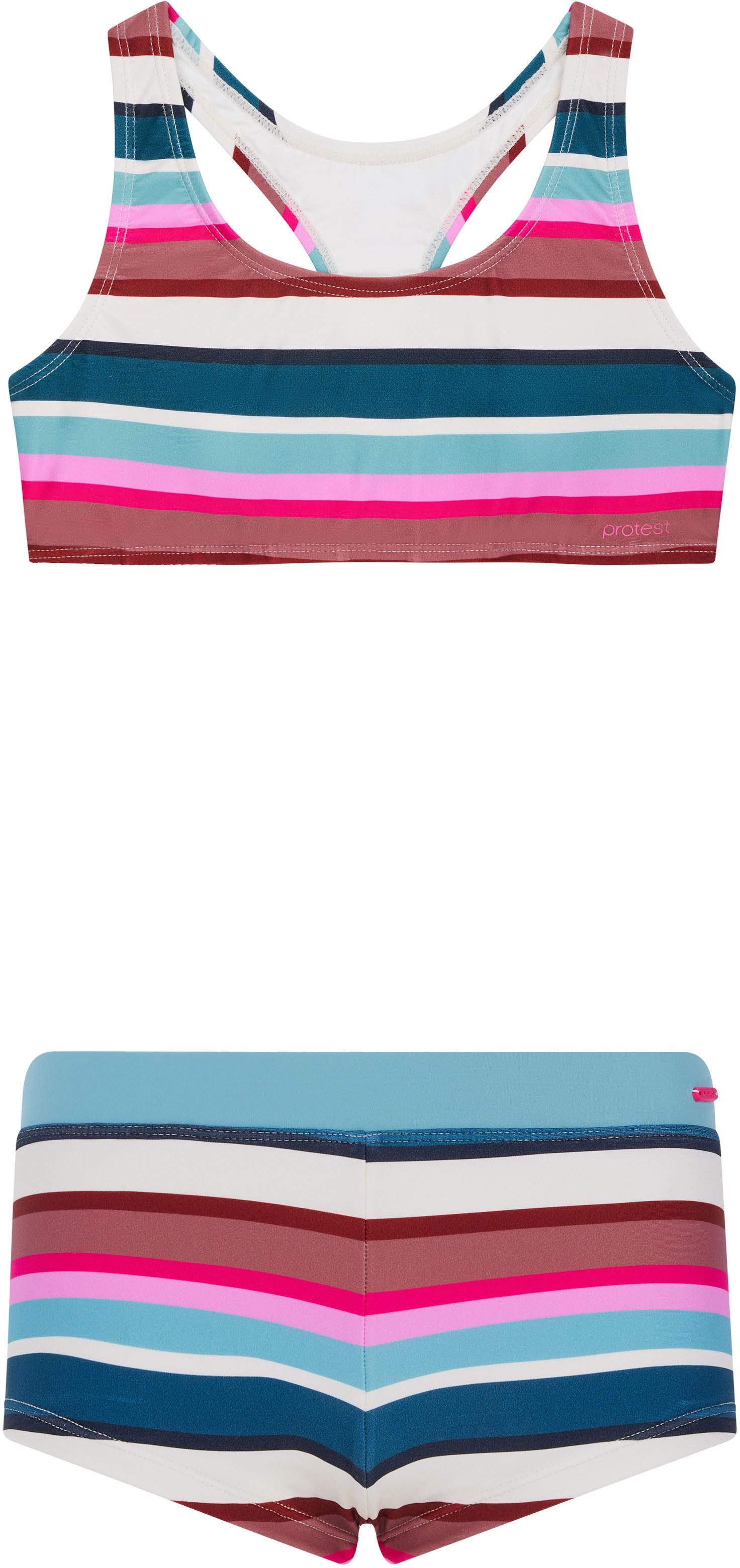 Bikini-Set mit buntem Streifenmuster; sportives Bralette-Oberteil mit Ringerrücken; Größen 140-176 mit herausnehmbaren Polstern; dazu passende Panties in den selben Farben; mit Gummibund; enthält Recyclingmaterial; nachhaltig produziert als Teil der PVRE Green-Kollektion; Obermaterial 82% Polyamid, 18% Elastan; Futter 90% Polyester, 10% Elastan.
