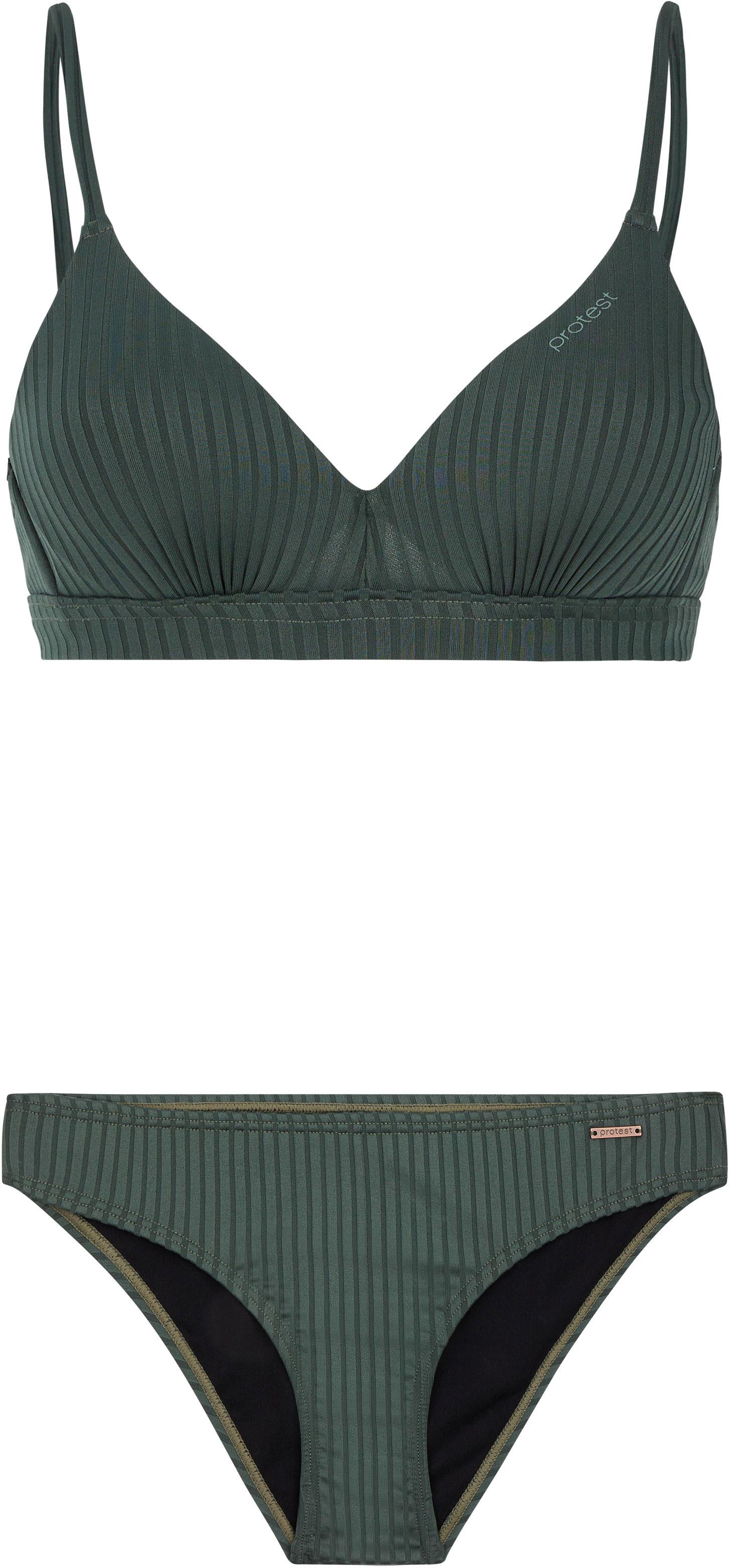 Bikini-Set aus angenehmem Stretchmaterial mit Streifenstruktur; Triangel-Oberteil mit Bügeln und eingenähten Polstern; Verschluss am Rücken; verstellbare Spaghettiträger; dazu passender Slip; nachhaltig produziert als Teil der PVRE Green-Kollektion; ohne PFC hergestellt; enthält Recyclingmaterial; Material 93% Polyester, 7% Elastan.