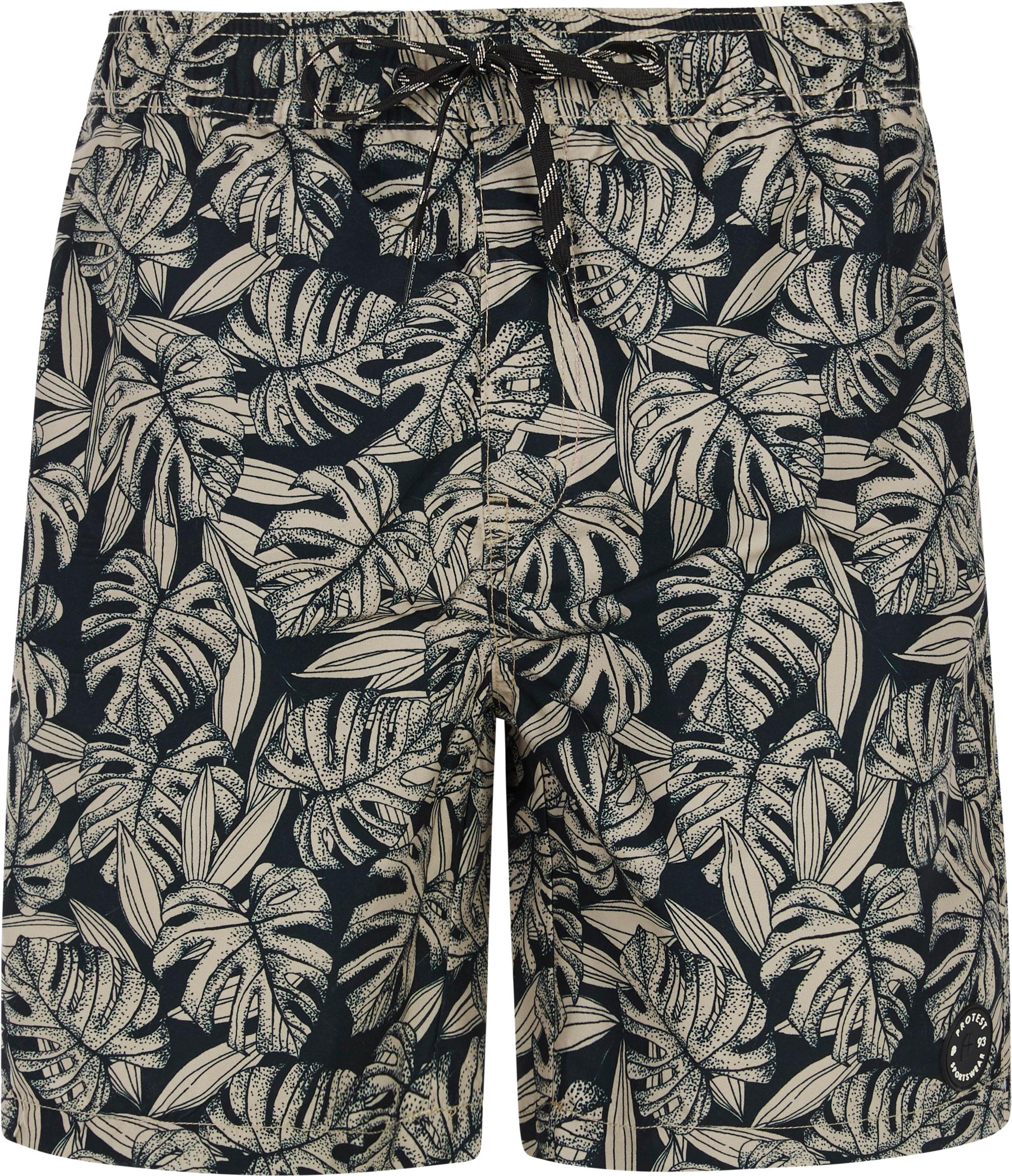 Badeshorts mit durchgehendem Blätterprint; wasserabweisend dank ohne PFC hergestelltem Finish; elastischer Bund mit Kordelzug; 2 seitliche Eingrifftaschen und eine Gesäßtasche mit Patte; integrierter Slip; Material 100% Polyester (recycelt).