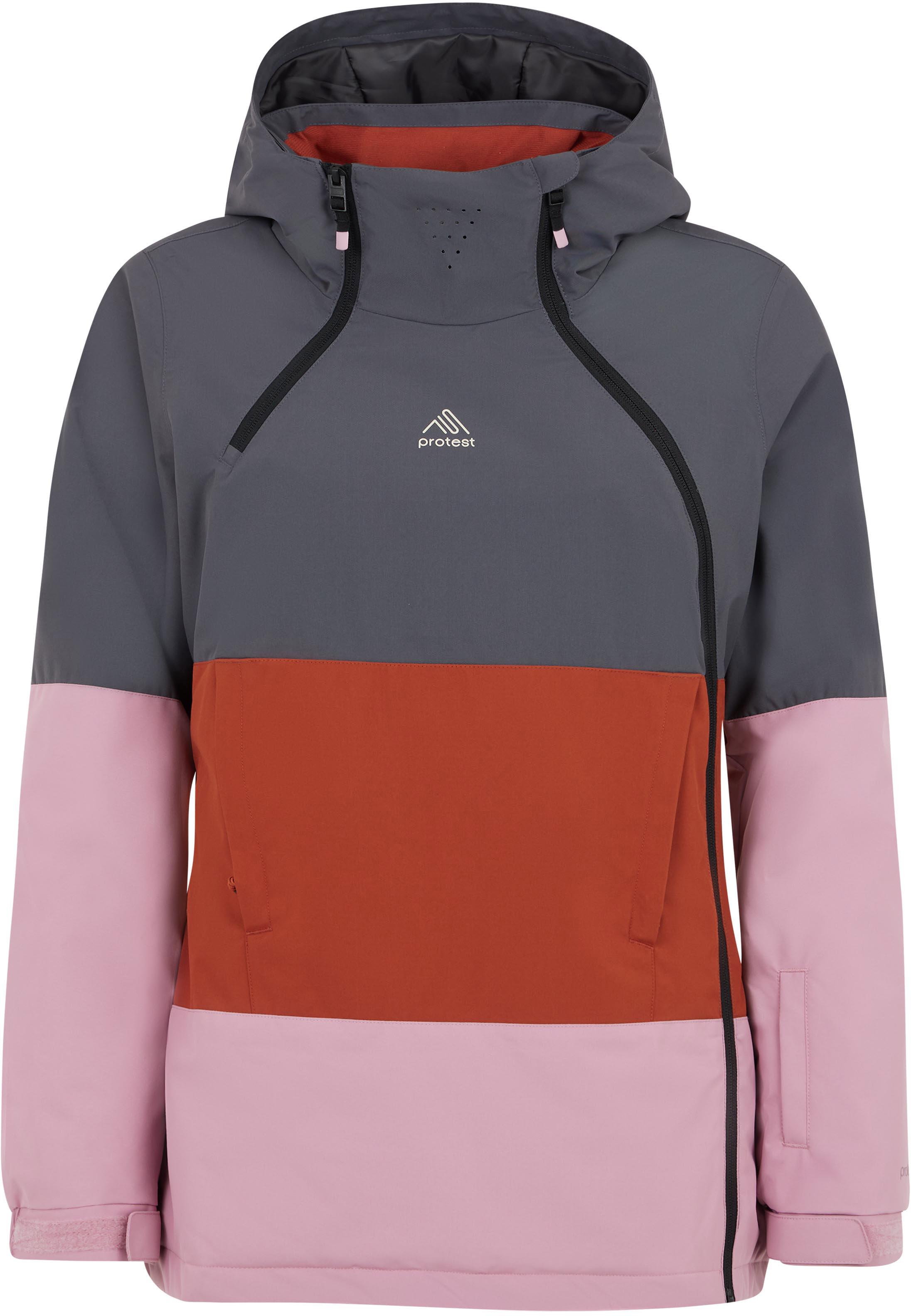 Skijacke im mehrfarbigen Design mit seitlich versetztem Frontreißverschluss und halblangem Reißverschluss am Kragen; wasserdicht und atmungsaktiv; mit ohne PFC hergestellter Beschichtung und versiegelten Nähten; sehr warm dank synthetischer Wattierung; vorgeformte, ergonomische Passform; feste Kapuze und hoher Kragen; Kängurutasche mit Reißverschluss; Liftpasstasche; Schneefang; äußere Ärmelbündchen mit Klettriegeln weitenregulierbar; Innenbündchen mit Daumenlöchern; Wassersäule: 10.000 mm; Material 100% Polyester.