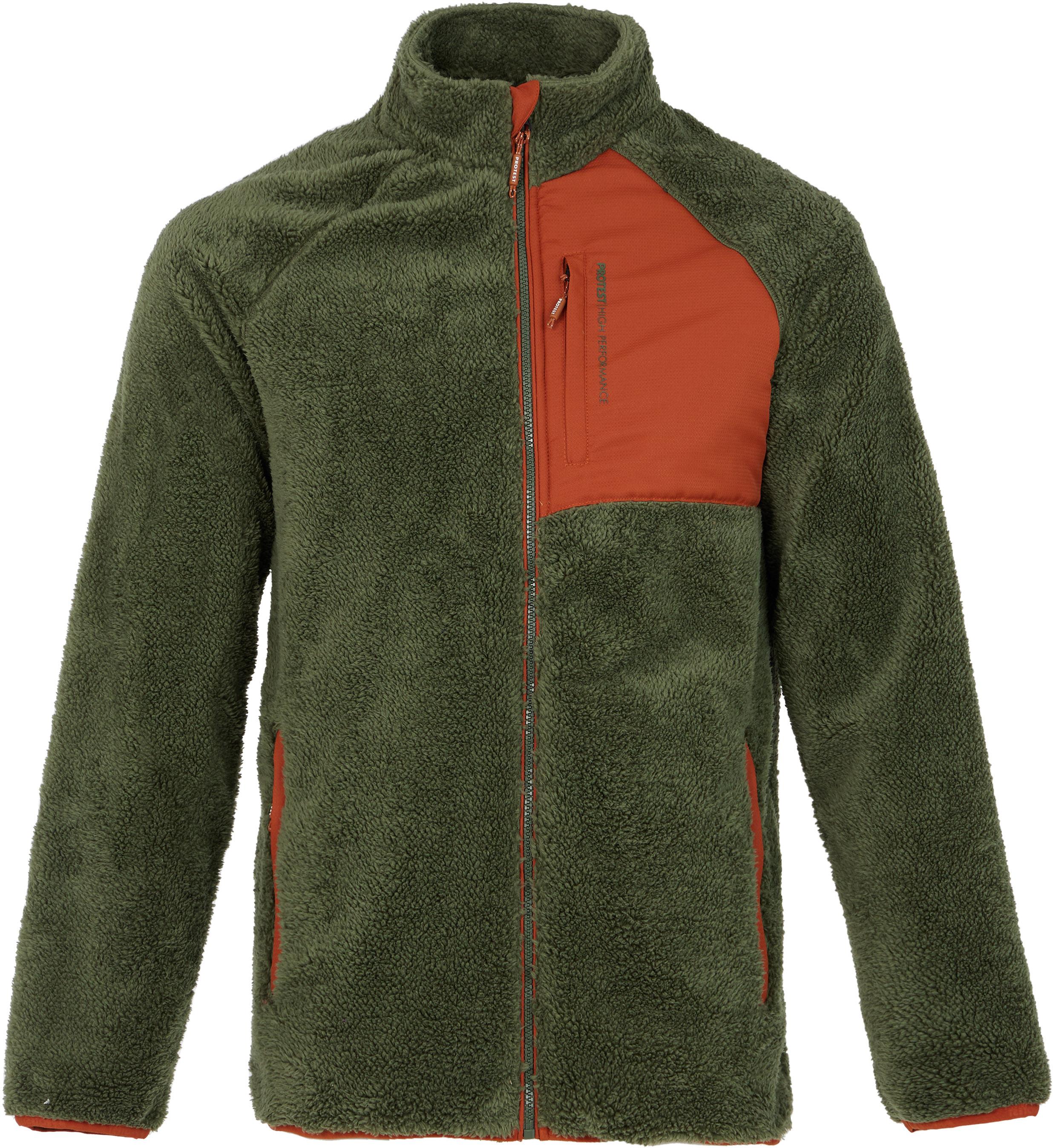 Warme, flauschige Fleecejacke mit Stehkragen; durchgehender, zentraler Reißverschluss; aufgesetzte Reißverschlusstasche auf der Brust; 2 seitliche Reißverschlusstaschen; elastische Ärmelabschlüsse; Material 100% Polyester.