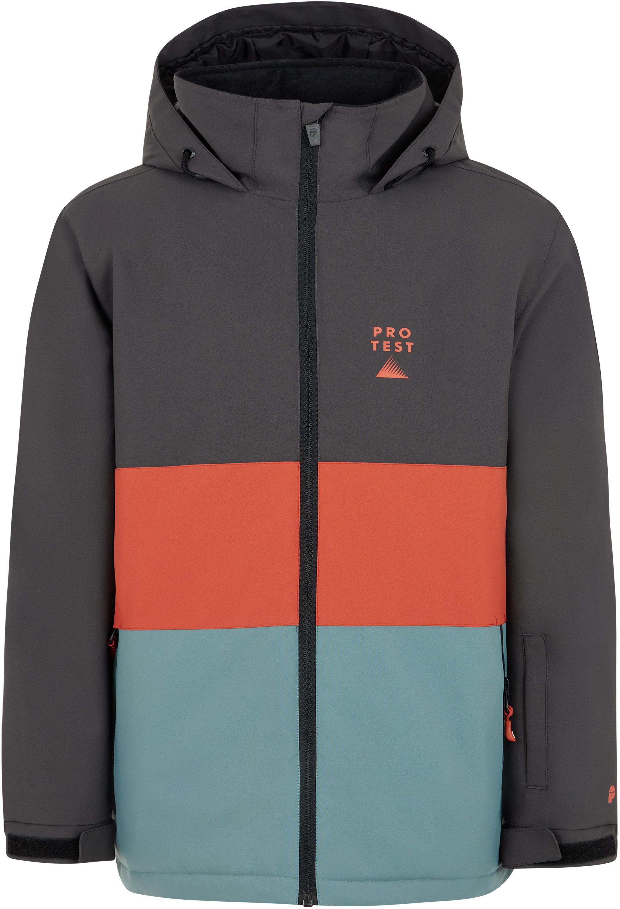 Snowboardjacke in 3-farbigem Colorblock-Design; wasserdicht; atmungsaktiv; Kapuze mit Tunnelzug; hochabschließender Kragen mit Kinnschutz; durchgehender Reißverschluss; seitliche Eingrifftaschen mit Reißverschluss; Liftpasstasche am Ärmel; weitenregulierbare Ärmelabschlüsse mit Klettriegeln; Logodetails; normale Passform; Material 100% Polyester.