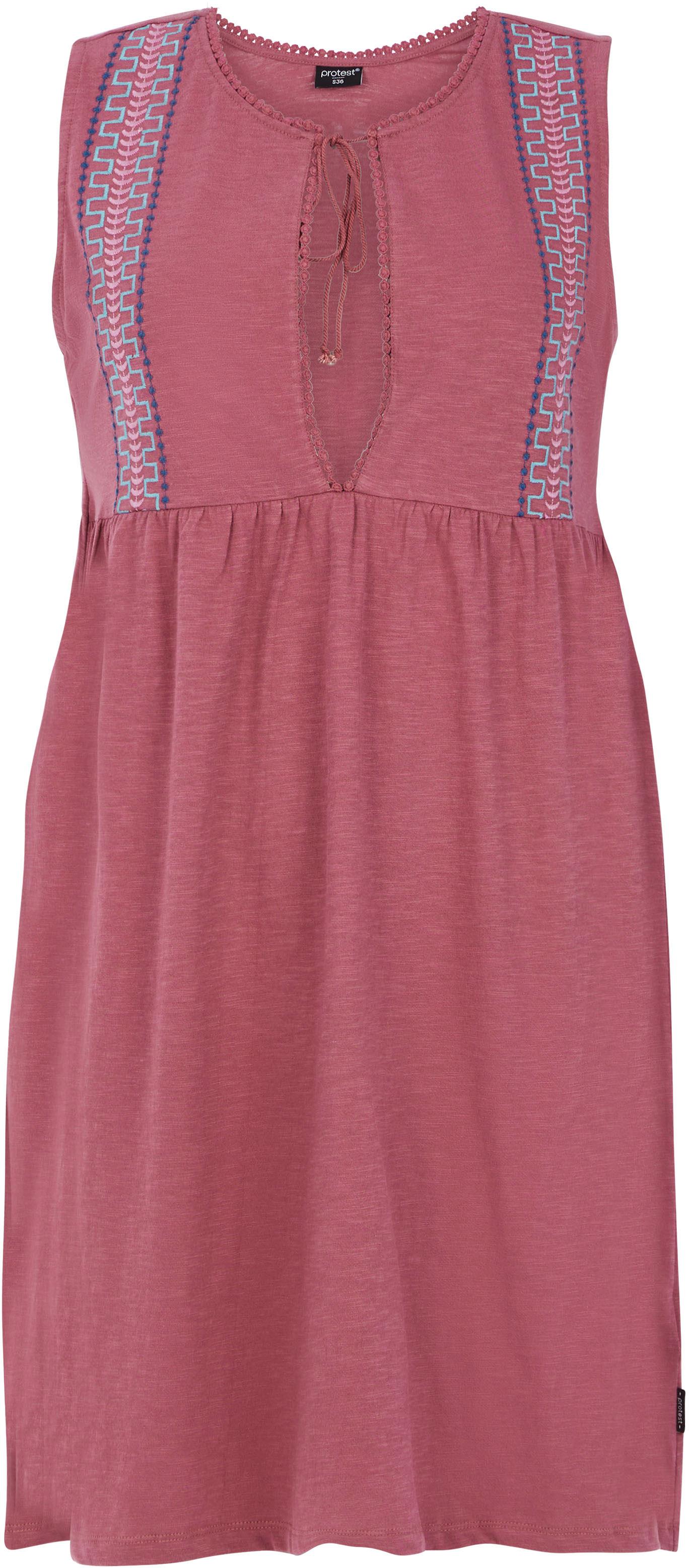 Minikleid im ärmellosen, sommerlichen Design; Rundhalsausschnitt mit Cut-out und Schnürung am Dekolletee, sowie einem femininen Spitzenbesatz; Zierstreifen mit buntem Stickmuster auf der Brust; teilende Naht in der Taille; der Rock fällt in lockeren Falten; Material 100% Baumwolle.