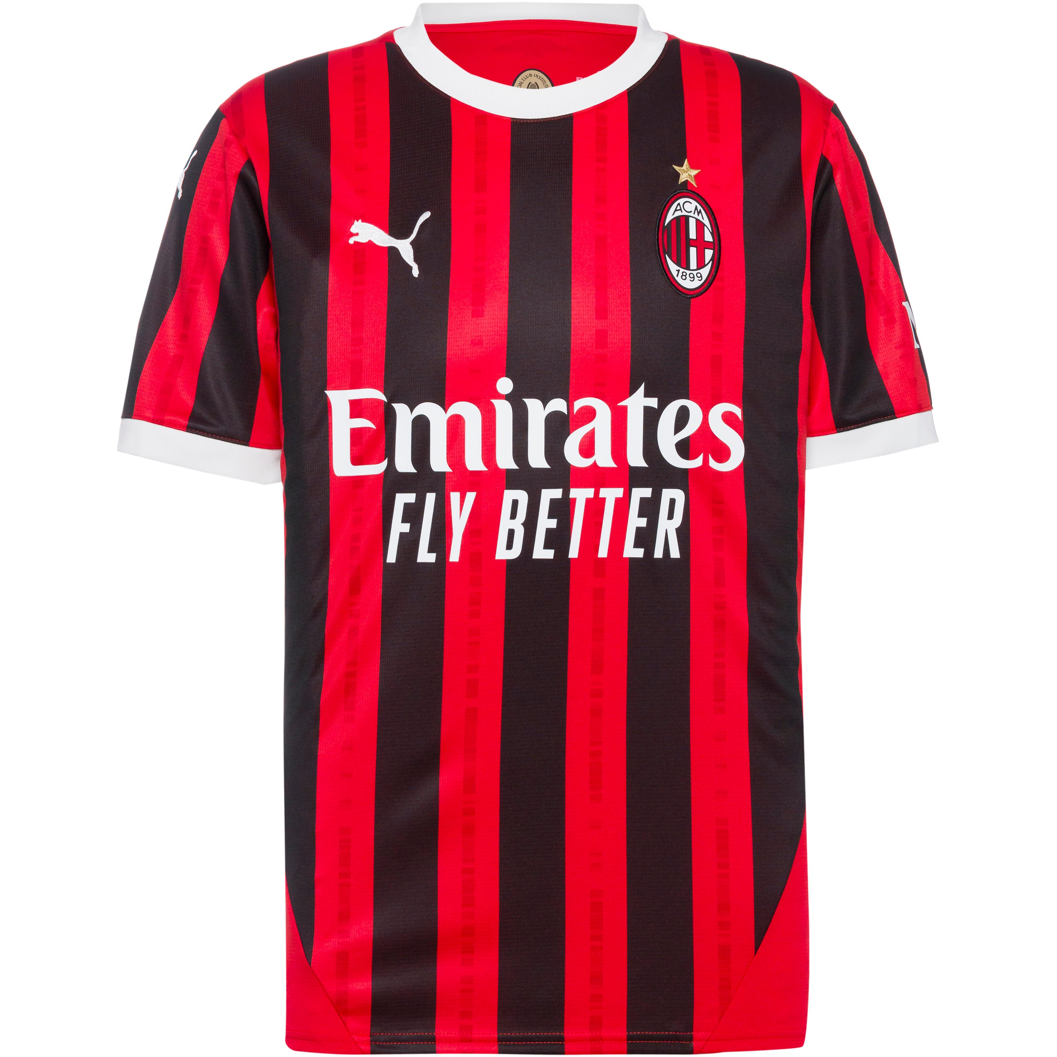 AC Mailand Trikot im Heim-Design, für die Saison 2024/25; mit feuchtigkeitsableitender und schnelltrocknender dryCELL-Technologie; Rundhalsausschnitt; Marken-, Sponsoren- und Vereinsdetails; im Re:fibre Prozess aus mind. 95% recyceltem Textilabfall hergestellt; Material 100% Polyester.