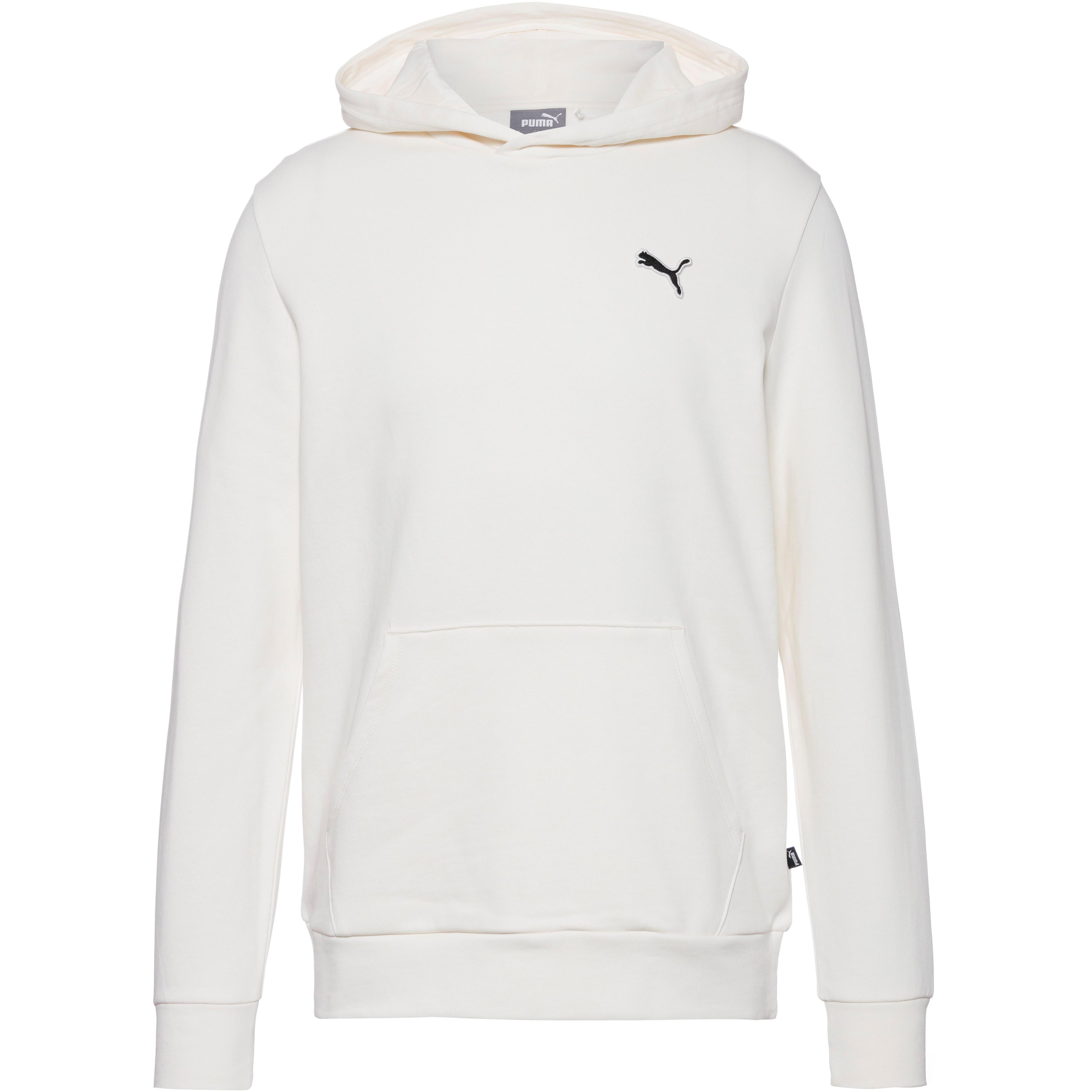Hoodie aus weichem Baumwollgewebe; Puma Cat Logo auf Brusthöhe; Kängurutasche; gerippte Bündchen an Ärmeln und Saum; zu mindestens 20% aus Recyclingmaterial hergestellt; Material 100% Baumwolle.