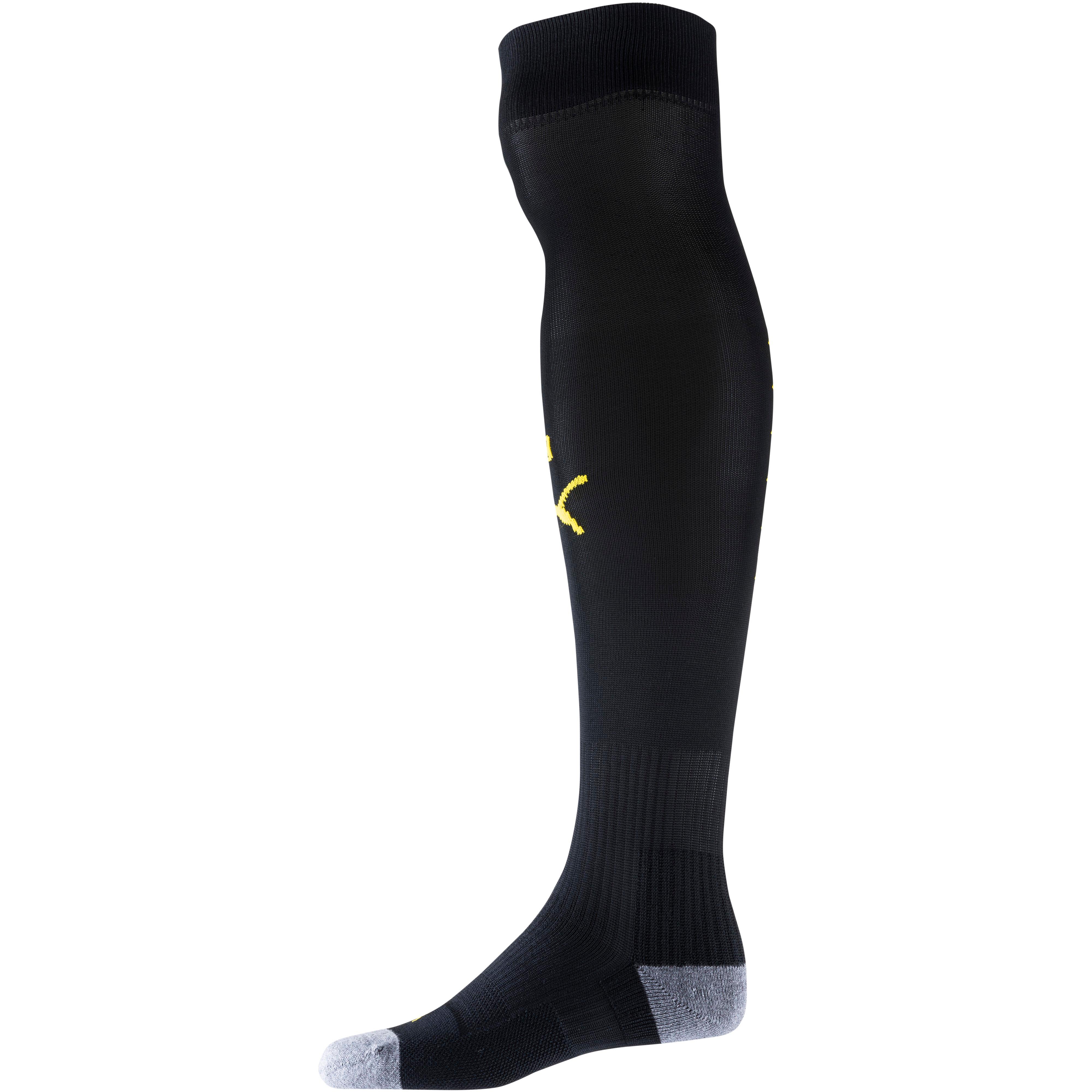 Fußballsocken im Auswärts-Design des Borussia Dortmund, für die Saison 2023/24; doppellagiger Umschlag für optimalen Komfort; gepolsterter Knöchelbereich; Unterstützung im Mittelfußbereich; Mesh zur Ventilation; gepolsterter Zehen- und Fersenbereich; anatomische Rechts- Linkspassform; Material 66% Polyester, 22% Polyamid, 9% Baumwolle, 3% Elastan.