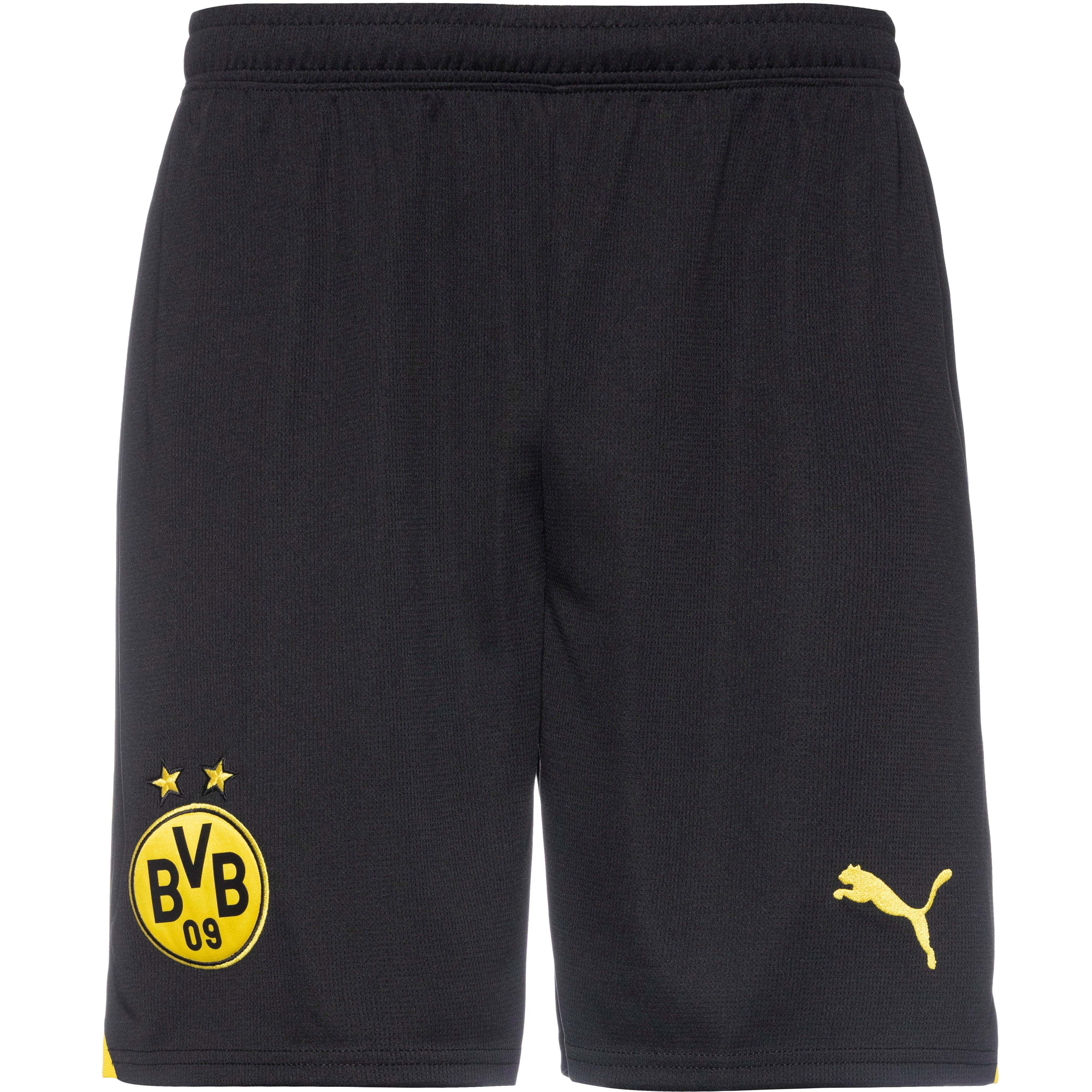 Exklusive Trainingsshorts des BVB 09 für das Heimspiel, mit feuchtigkeitsableitender und schnelltrocknender dryCELL-Technologie; elastischer Bund mit innenliegendem Kordelzug; leichtes Tragegefühl; Elastikeinsätze auf den Seiten sorgen für optimale Körperanpassung; Vereins-und Markendetails auf der Front; Seitenlänge: ca. 45 cm (Gr.M), Material I 100% Polyester, Material II 97% Polyester, 3% Elastan.