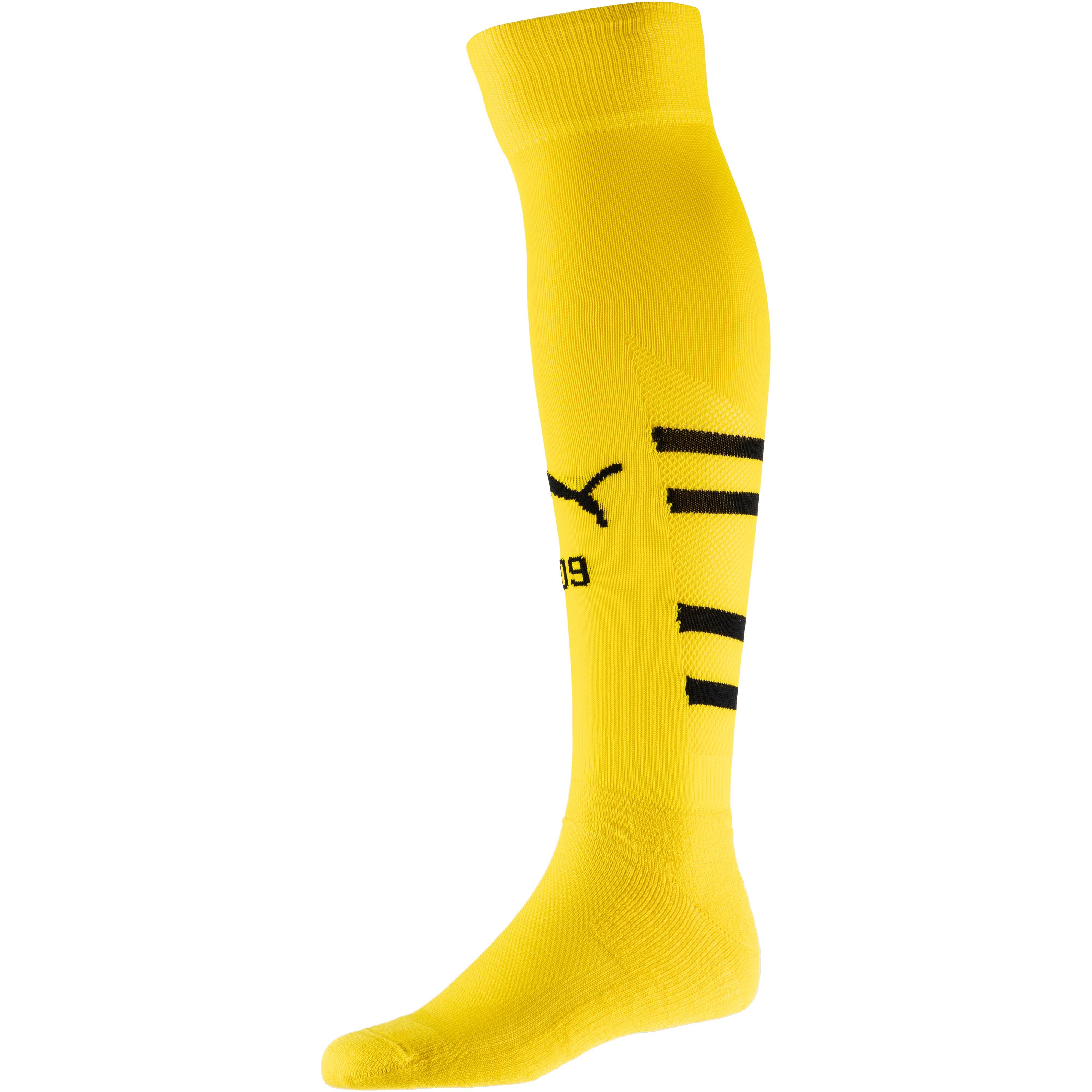 Fußballsocken im Heim-Design der Borussia Dortmund; für die Saison 2024/25; anatomische Rechts- Linkspassform; kompakt gestrickter Knöchelbereich für besseren Sitz und Stabilität; Druckstellen-Polsterung für optimalen Komfort; Mesh zur Ventilation; Material 68% Polyester, 18% Polyamid, 12% Baumwolle, 2% Elastan.