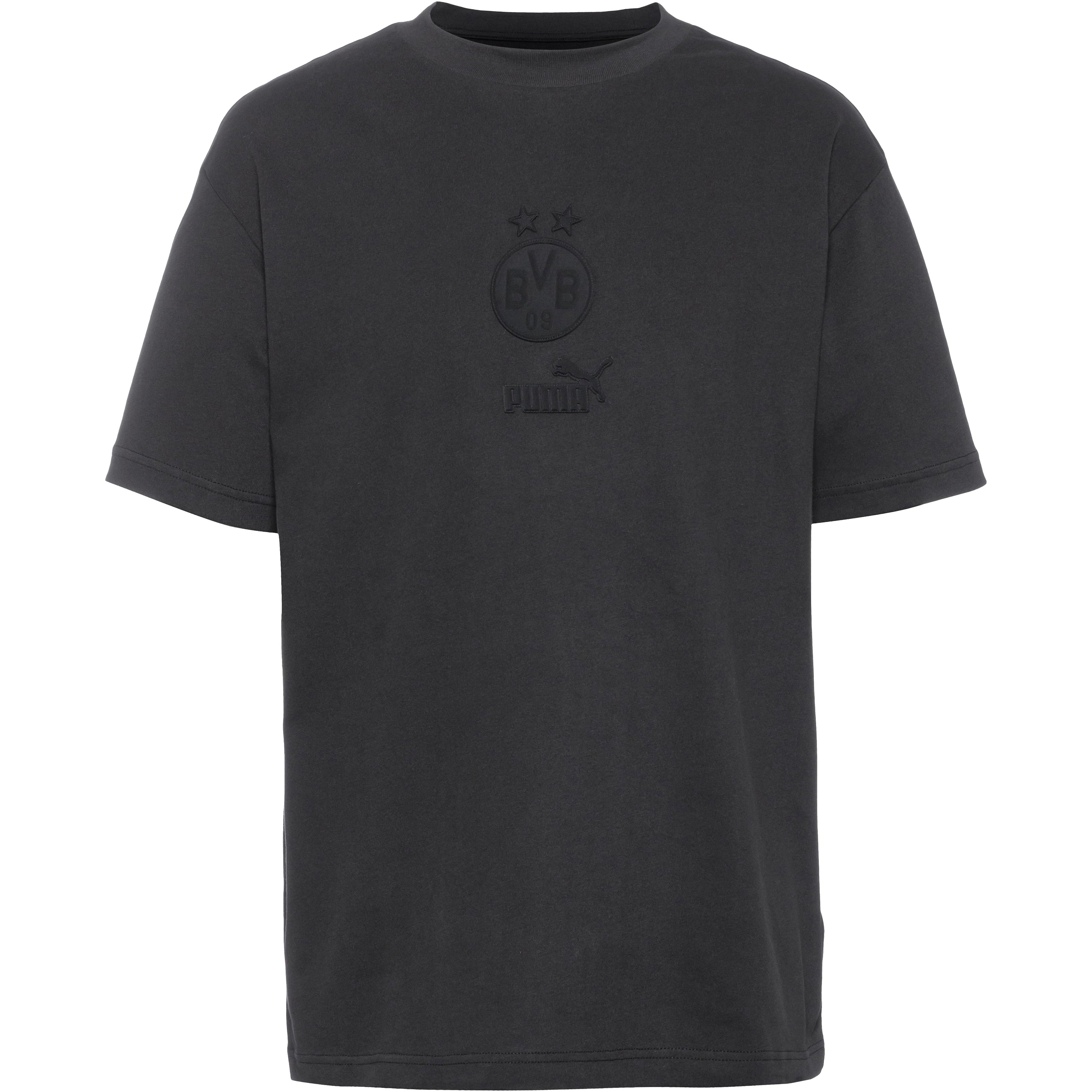 T-Shirt mit Vereinsdetails des Borussia Dortmunds; Rundhalsausschnitt; Material I 100% Baumwolle, Material II 96% Baumwolle, 4% Elastan.