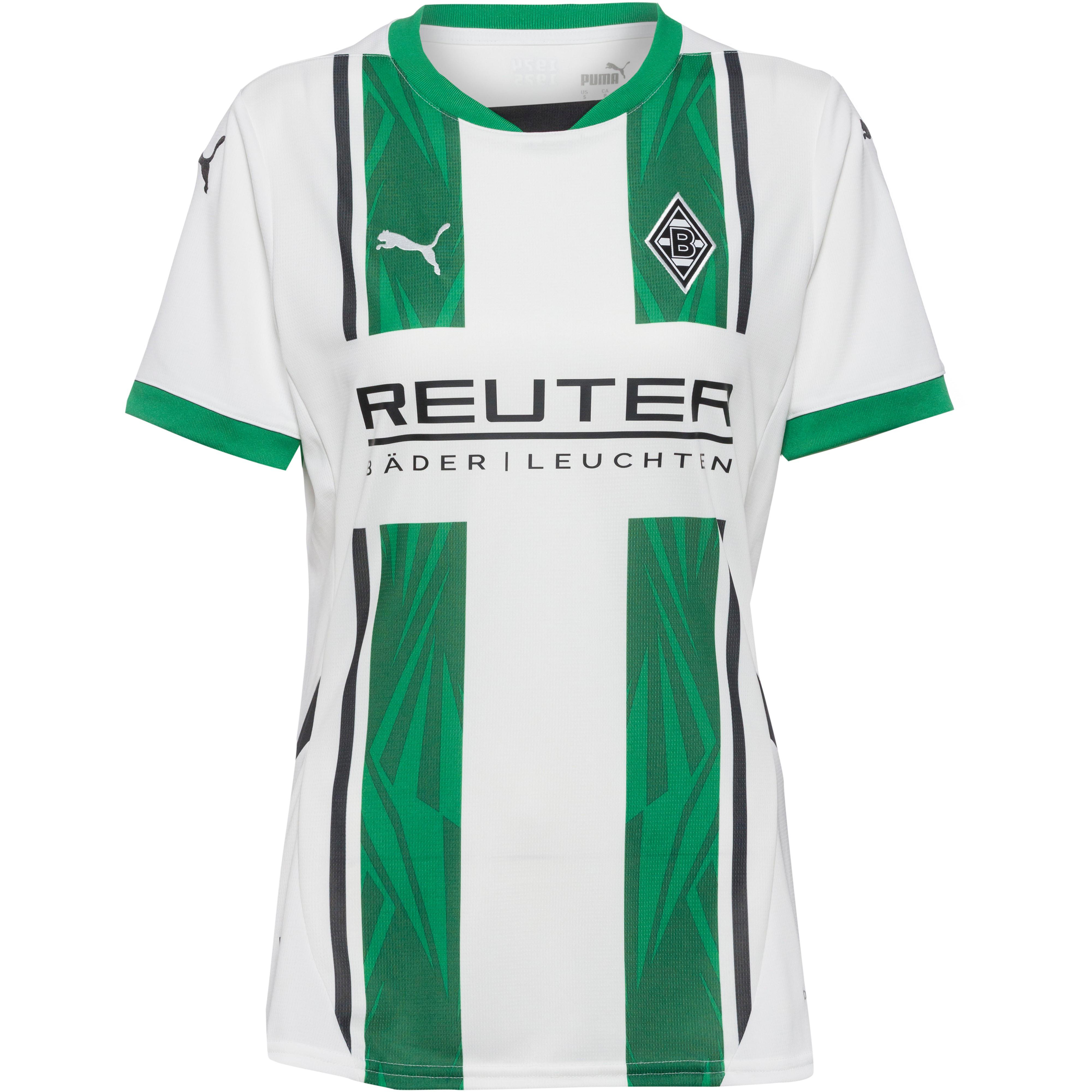 Damen-Trikot im Heim-Design des Borussia Mönchengladbachs, für die Saison 2024/25; schnelltrocknend und feuchtigkeitsableitend dank dryCELL-Technologie; Rundhalsausschnitt; Marken-, Sponsoren- und Vereinsdetails auf der Front; im Re:fibre Prozess aus mind. 95% recyceltem Textilabfall hergestellt; Material 100% Polyester.