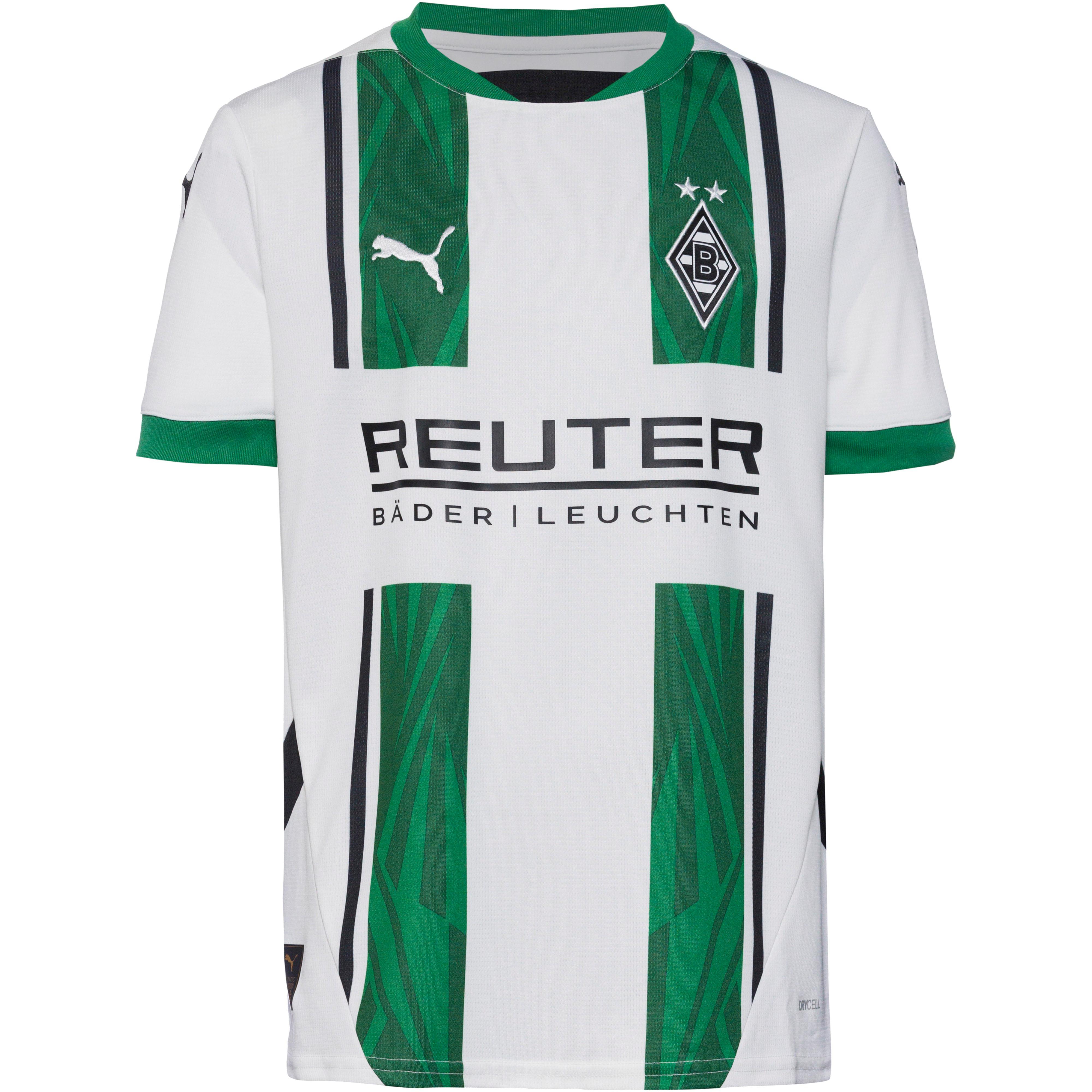 Kinder-Trikot im Heim-Design des Borussia Mönchengladbachs, für die Saison 2024/25; hervorragendes Feuchtigkeitsmanagement durch dryCELL-Technologie; Rundhalsausschnitt; Marken-, Sponsoren- und Vereinsdetails; im Re:fibre Prozess aus mind. 95% recyceltem Textilabfall hergestellt; Material 100% Polyester.