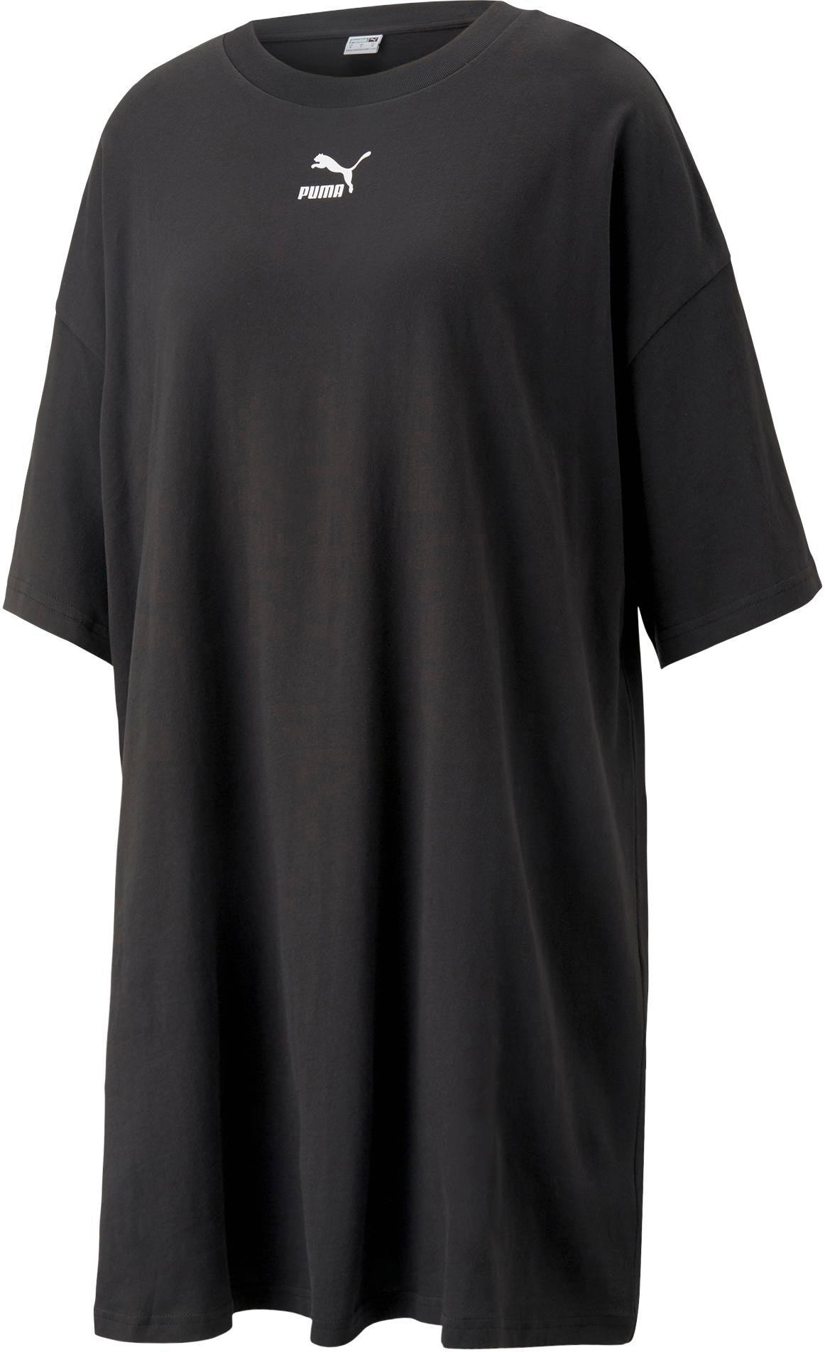 T-Shirt-Kleid aus weichem Jerseymaterial; moderner Schnitt mit überschnittenen Schultern und Oversized-Passform; Rundhalsausschnitt; halblange Ärmel; Logodetail; aus nachhaltiger, von der Better Cotton Initiative zertifizierter Baumwolle hergestellt; Material 100% Baumwolle.