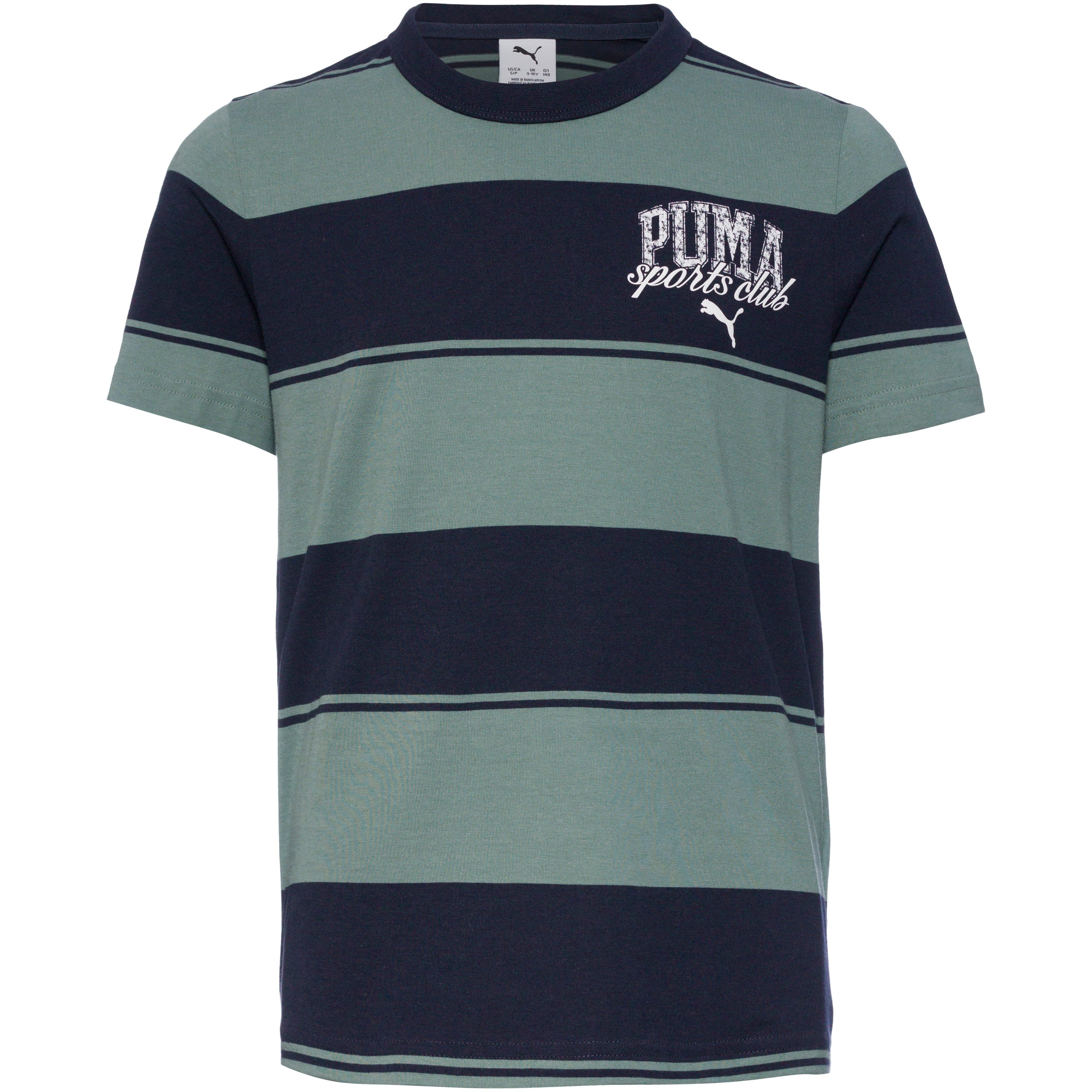 Gestreiftes T-Shirt für Kinder, mit Rundhalsausschnitt und Markendetail; Material I 100% Baumwolle, Material II 96% Baumwolle, 4% Elastan.