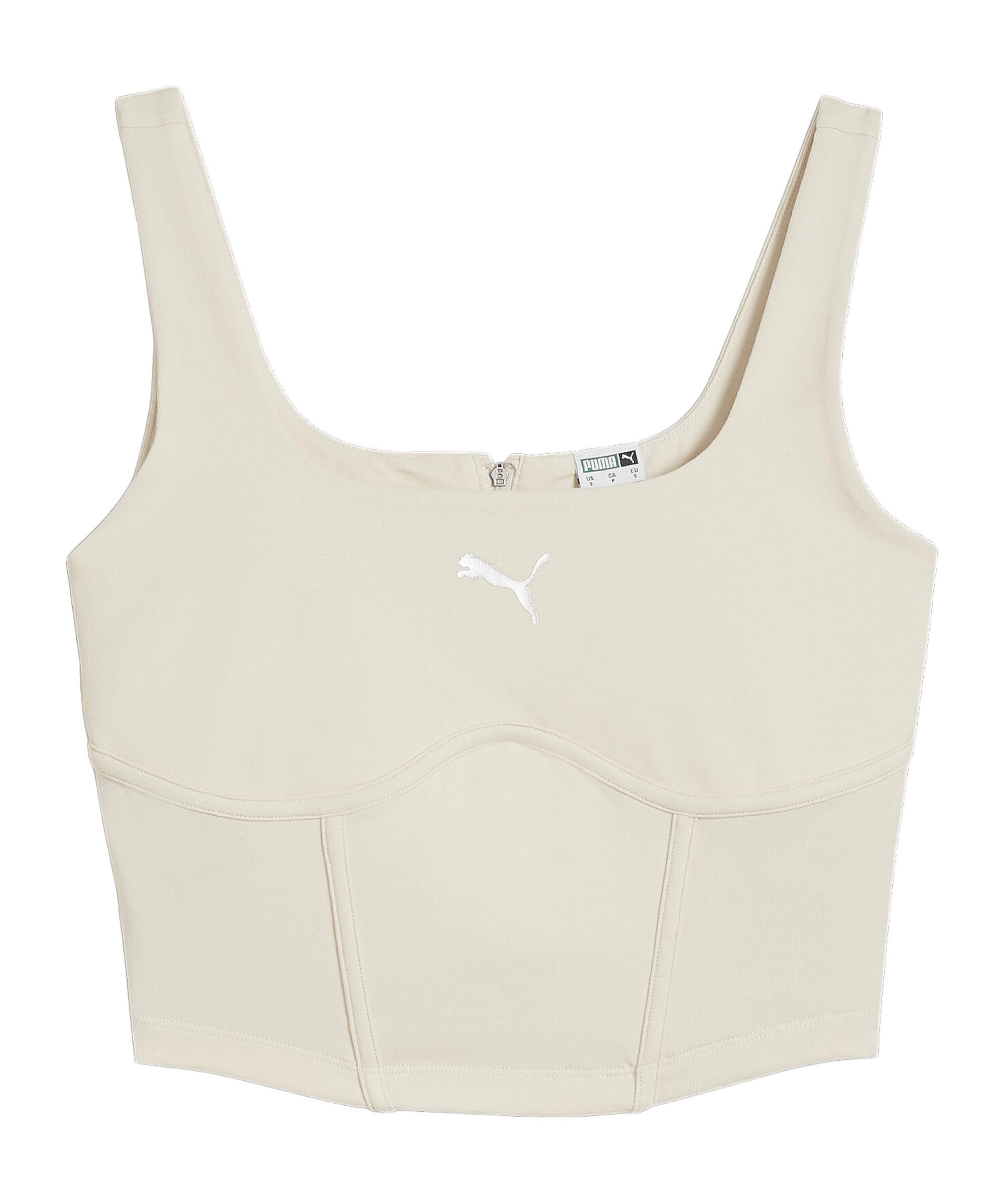Die richtige Ausrüstung ist das A und O – das atmungsaktive Modell in Weiß ist die beste Ausstattung für dich. Der PUMA Damen-BH sorgt für wirkliche Begeisterung. Wir empfehlen dieses atmungsaktive und bequeme Modell, das obendrein hervorragend verarbeitet ist. Obendrein bietet er dir eine hohe Strapazierfähigkeit. Auf die hohe Qualität des 1948 gegründeten und international etablierten Sportartikelherstellers mit der PUMA Cat ist auch bei diesem BH Verlass. Dieser ärmellose BH besitzt einen klassischen U-Ausschnitt. Mit diesem BH bist du sowohl im Training als auch in der Freizeit bestens ausgerüstet. Produktdetails: Eigenschaften: bequem, atmungsaktiv Material: 37% Baumwolle, 36% Polyacryl, 17% Polyamid, 6% Polyester, 4% Elastodien