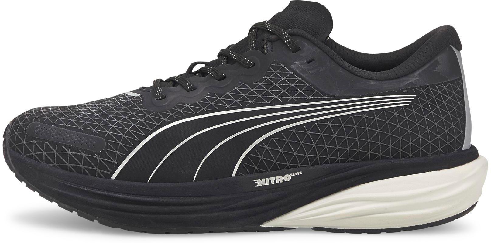 Laufschuhe mit dauerhaft wasserabweisendem Finish; strapazierfähiges Textil-Obermaterial; Standard-Schnürung; gepolsterter Schaft; Textilfutter; NitroFoam in der Zwischensohle sorgt für eine hervorragende Dämpfung und Reaktionsfähigkeit; innovative Innoplate-Palttenkonstruktion für eine maximale Energieübertragung; robuste Pumagrip-Außensohle mit leichtem Profil; reflektierende Details; für Neutralläufer mit normaler Pronation geeignet; ideal für Straße und Park.