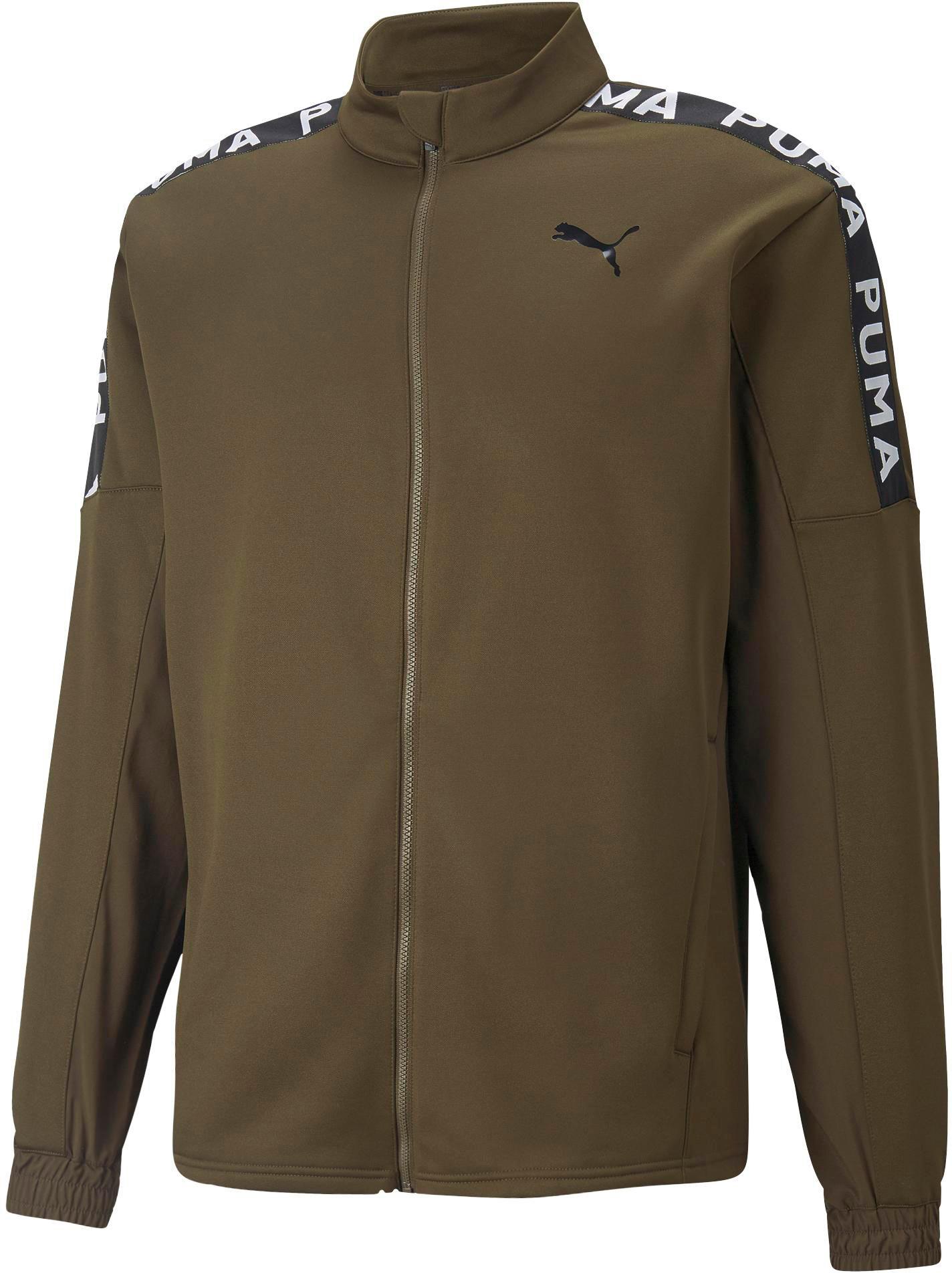 Trainingsjacke mit auffälligen Markenschriftzügen auf den Schultern; Kinnschutz am Stehkragen; durchgehender Frontreißverschluss; 2 Eingrifftaschen; Ärmelabschlüsse mit elastischen Bündchen; Cat-Logo auf der Brust; normale Passform; Material 100% Polyester.