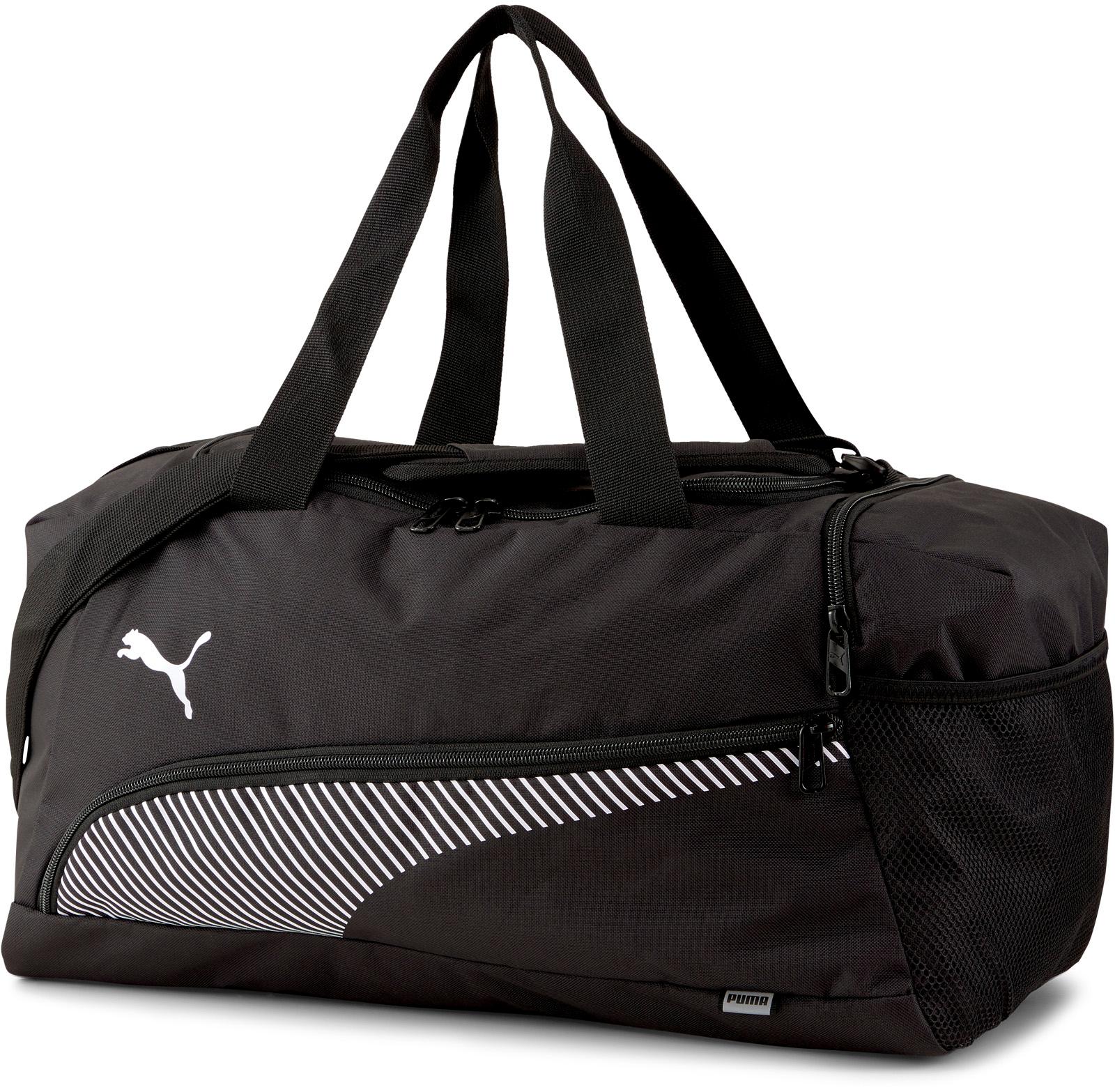 Kleine Sporttasche mit geräumigem, durch 2-Wege-Reißverschluss, zugänglichem Hauptfach; Front- und Seitenfach mit Reißverschluss; 1 Netztasche an der Seite; verstärkter Boden; 2 Tragegriffe; verstellbarer Schultergurt; Label-Details; Material 100% Polyester.