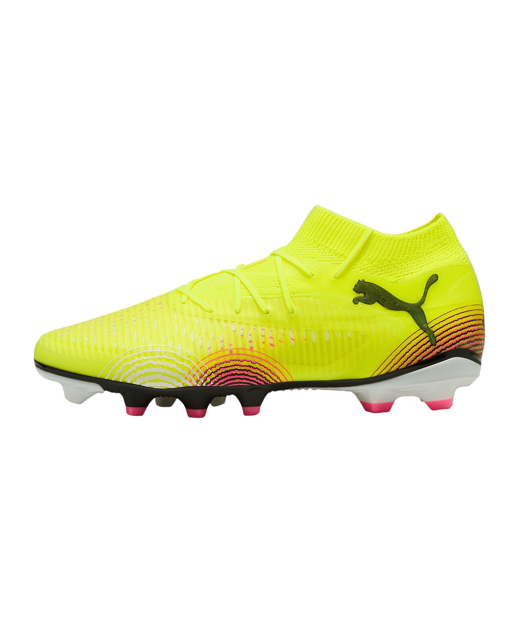 Mit den PUMA FUTURE 8 Pro FG/AG Fußballschuhen kannst du auf dem Platz richtig Gas geben und deine Gegner alt aussehen lassen. Diese Schuhe sind ideal für Erwachsene, die sowohl auf festen Böden als auch auf Kunstrasen ihr Können unter Beweis stellen wollen. Die PUMA FUTURE 8 Pro FG/AG punkten mit einem individuellen Sitz, der durch die antibakterielle und atmungsaktive Technologie für ein angenehmes Tragegefühl sorgt. Der Grip dieser Schuhe gibt dir die nötige Bodenhaftung, um schnelle Richtungswechsel und explosive Sprints hinzulegen. Und das Beste: Sie sind teilweise aus recycelten Materialien gefertigt, was nicht nur deinem Spiel, sondern auch der Umwelt zugutekommt. Schnapp dir die PUMA FUTURE 8 Pro FG/AG und erlebe, wie sie dein Spiel auf ein neues Level heben. Du wirst die Qualität und den Komfort von PUMA bei jedem Schritt spüren.Produktdetails:Herstellerfarbbezeichnung: YellowAlertPUMABlackSunStruckHauptfarbe: GelbNachhaltigkeit: Teilweise aus recycelten MaterialienTechnologie: Comfortable, Cushioning, Durability, Grip, Leicht, Speed Obermaterial: Mesh, Synthetik, Textil