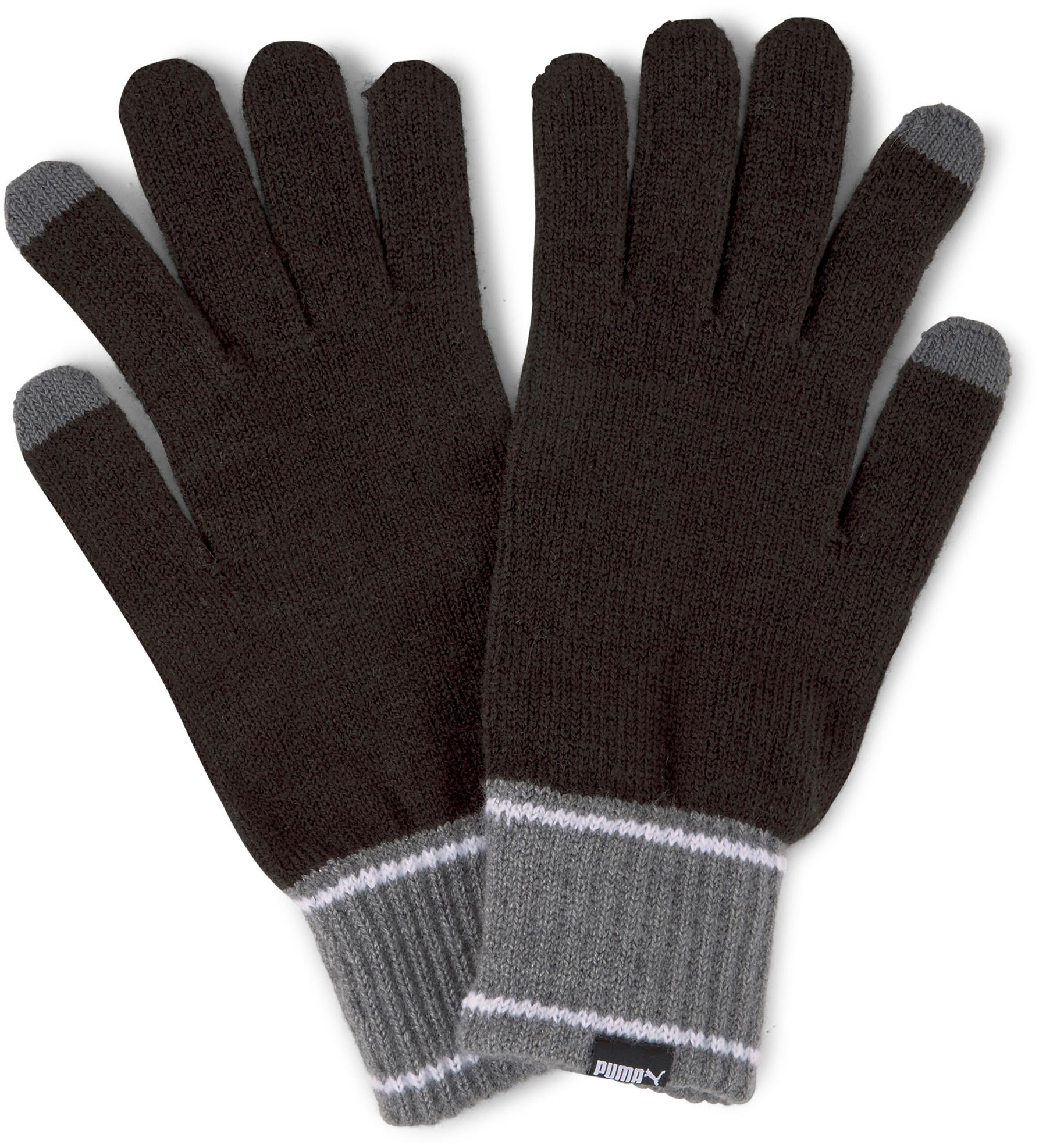Gestrickte Fingerhandschuhe mit Touchscreen-Funktion an Daumen und Zeigefinger; Handgelenk in Kontrastfarbe; Label-Detail; Material 95% Polyacryl, 3% Polyester, 1% Elastan, 1% Metallfaser.