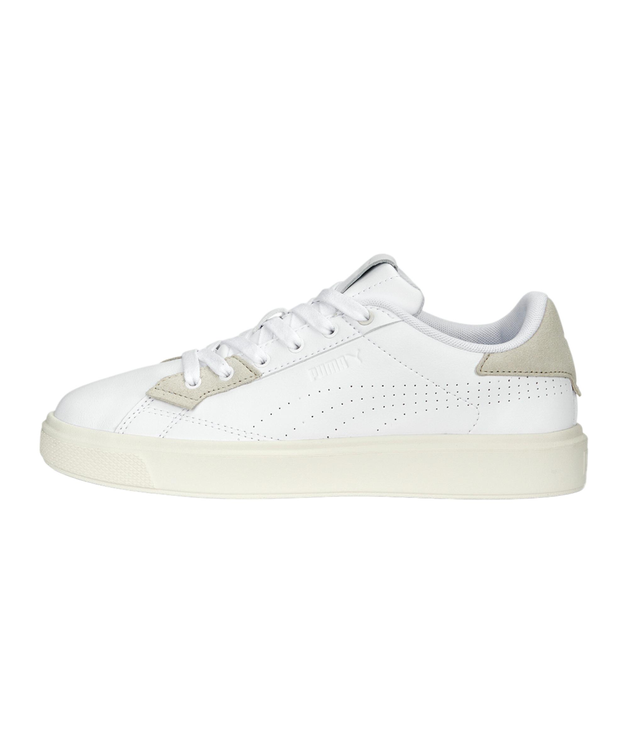 Hier kommt der PUMA Damen-Lifestyleschuh in Weiß, der dir einen besonderen Look und ein angenehmes Tragegefühl verschafft. Eine perfekte Passform und noch besserer Halt werden durch die normale Schnürung garantiert. Die bequeme, dämpfende und atmungsaktive Funktionsweise lässt ihn überzeugen. Eine hohe Strapazierfähigkeit wird dir geboten. Du bekommst hier vom 1948 gegründeten und international etablierten Sportartikelhersteller aus Deutschland einen hervorragenden Lifestyleschuh präsentiert. Du suchst einen stylischen und bequemen Schuh? Dann ist dieser genau der Richtige. Produktdetails: Lifestyleschuh für Damen Obermaterial: Textil Futter: Textil Laufsohle: Gummi