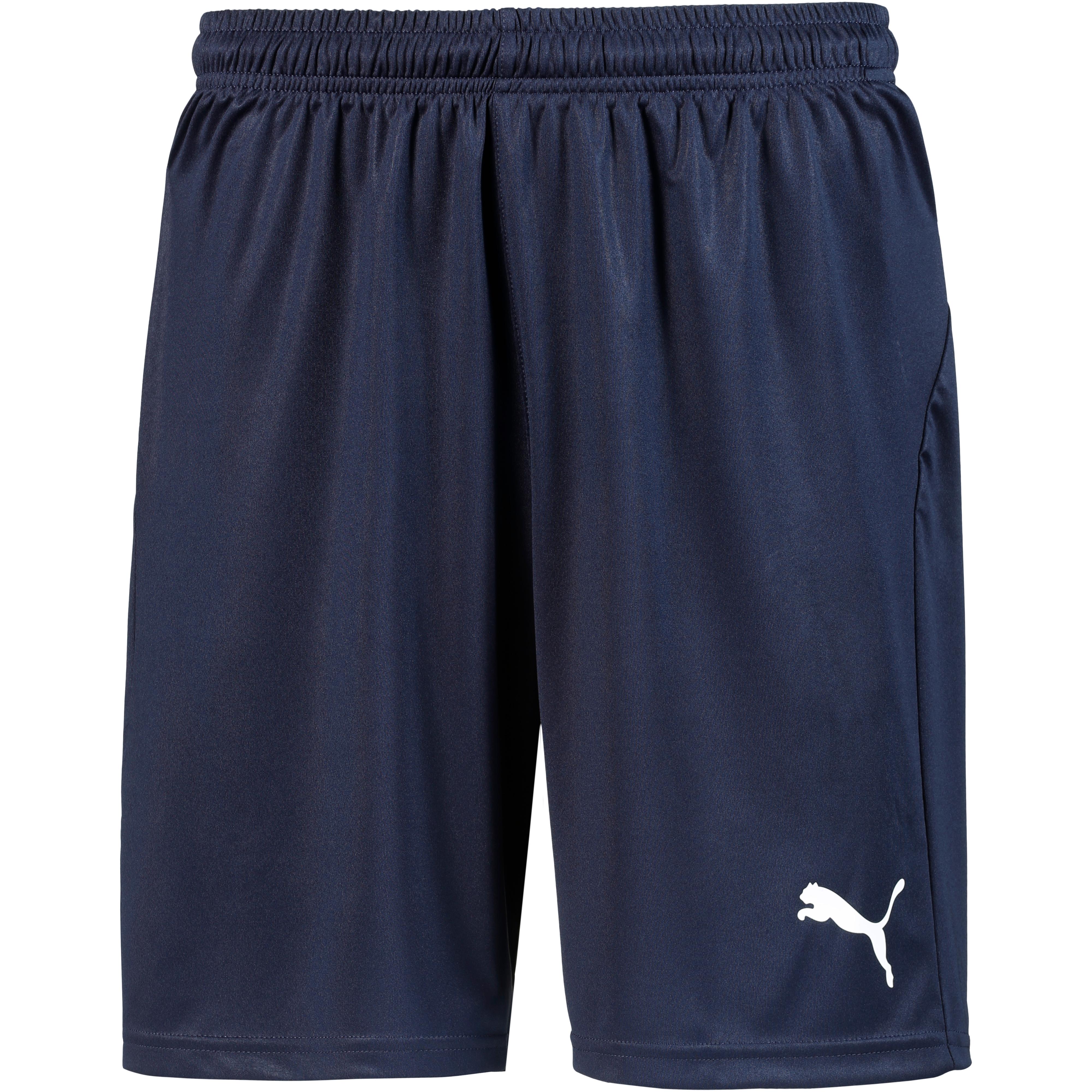 PUMA LIGA. Fußballshorts mit feuchtigkeitsregulierender Dry Cell-Technologie; Elastikbund mit Kordelzug auf der Innenseite; leicht und elastisch; Logo-Print am Saum; Seitenlänge: ca. 41 cm/Gr. M; Material 100% Polyester.