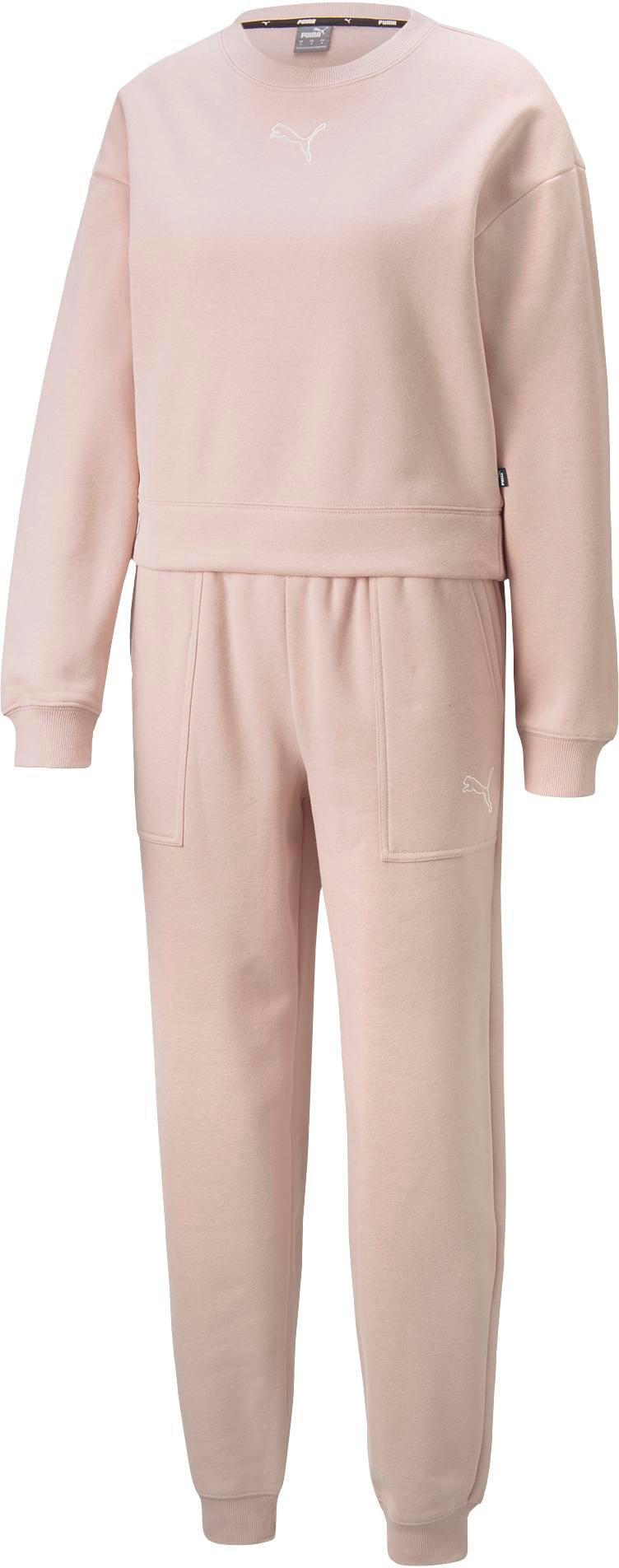 Trainingsanzug aus Sweatmaterial mit Logoprint; kürzer geschnittenes Oberteil mit Rundhalsausschnitt und weichem Nackenband; Hose mit elastischem Bund und 2 Eingrifftaschen; Rippbündchen an den Abschlüssen; Material 66% Baumwolle, 34% Polyester.