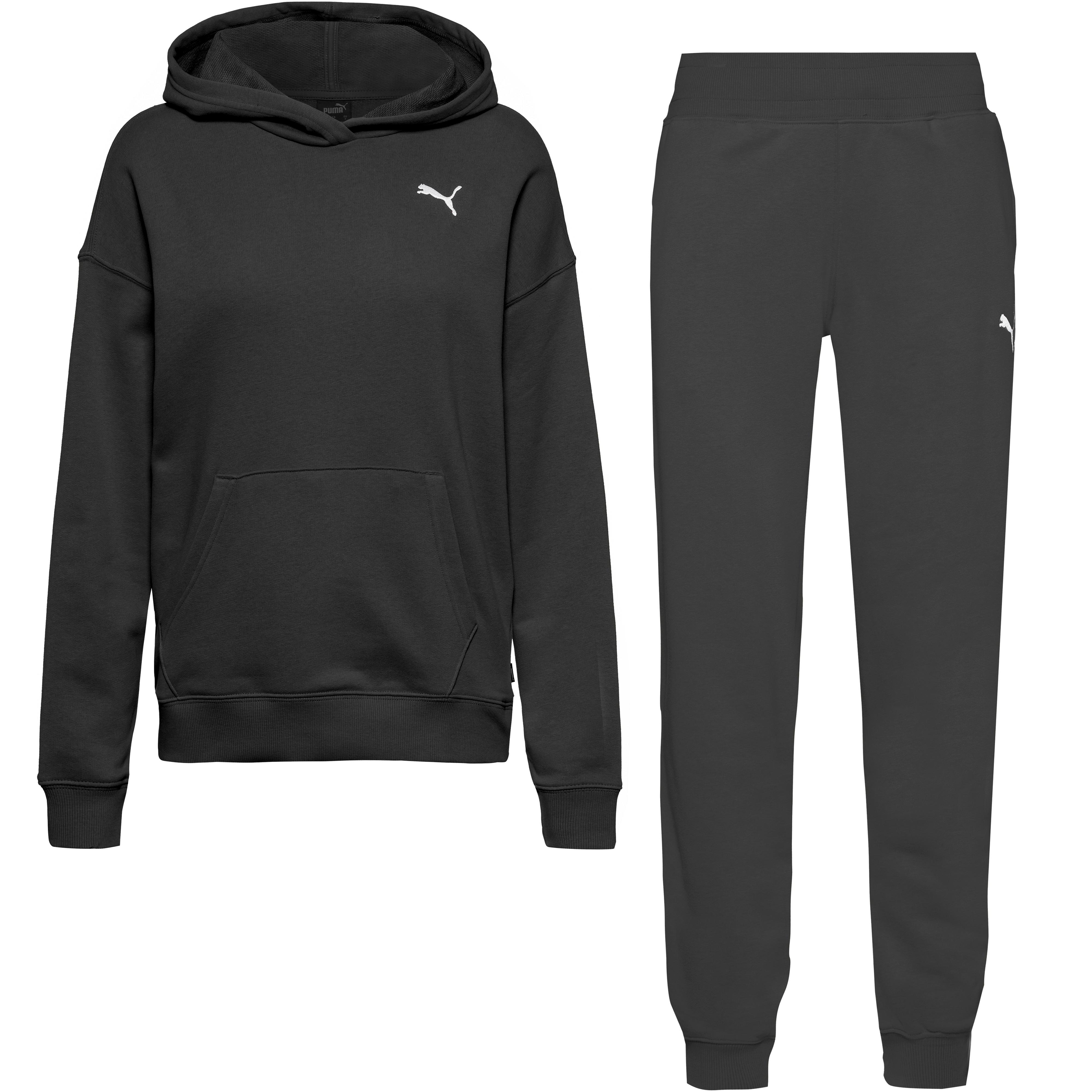Trainingsanzug aus bequemen Sweatgewebe; Hoodie mit Kapuze und Kängurutasche; Hose mit weitenregulierbarem Bund mit innenliegendem Kordelzug; seitliche Eingriffstaschen; Markendetails; Material 68% Baumwolle, 32% Polyester.