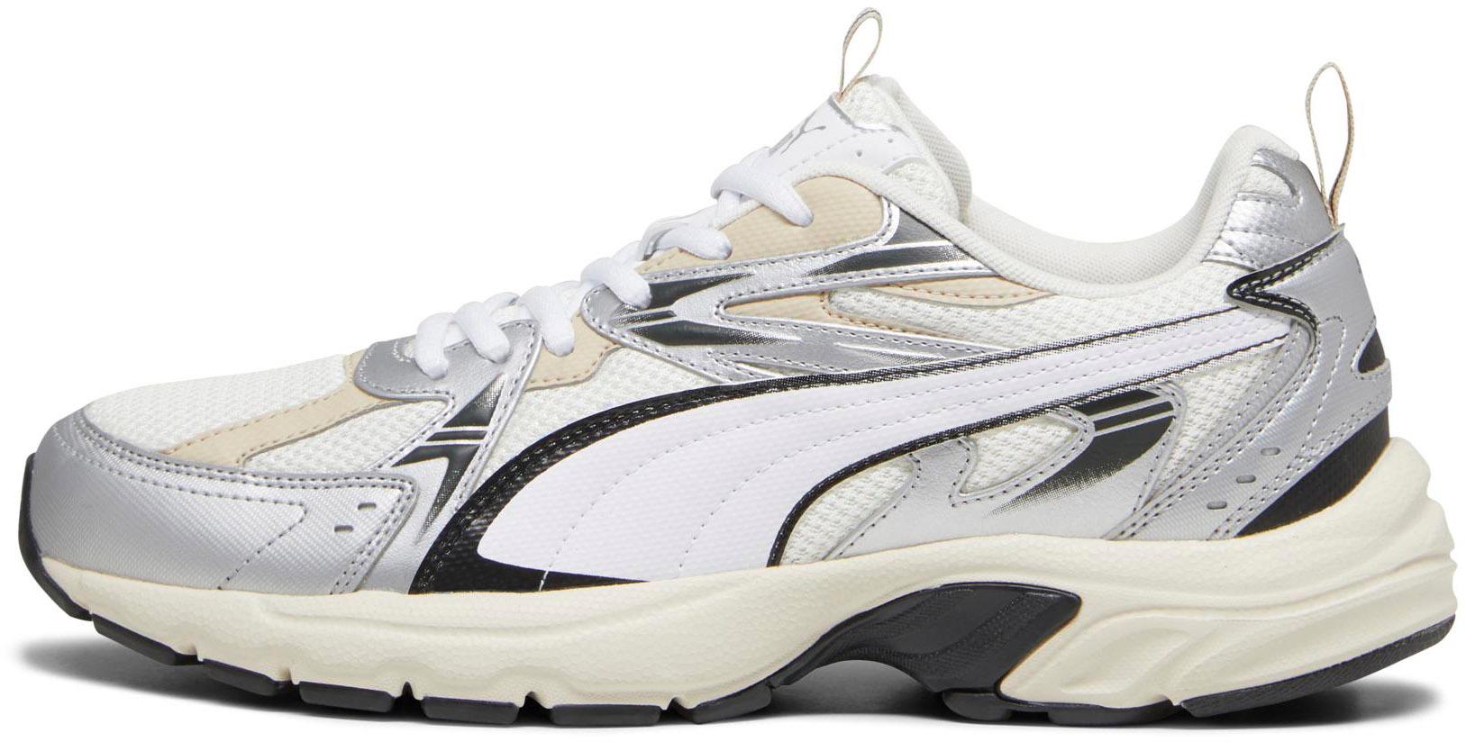 Sportliche Sneaker im 2000er-Style; Obermaterial aus atmungsaktivem Mesh mit strapazierfähigen Synthetik-Überzügen; normale Schnürung; Textilfutter; Softfoam-Einlegesohle mit extra dicker Ferse für eine weiche Dämpfung; IMEVA-Zwischensohle; profilierte Gummi-Außensohle.