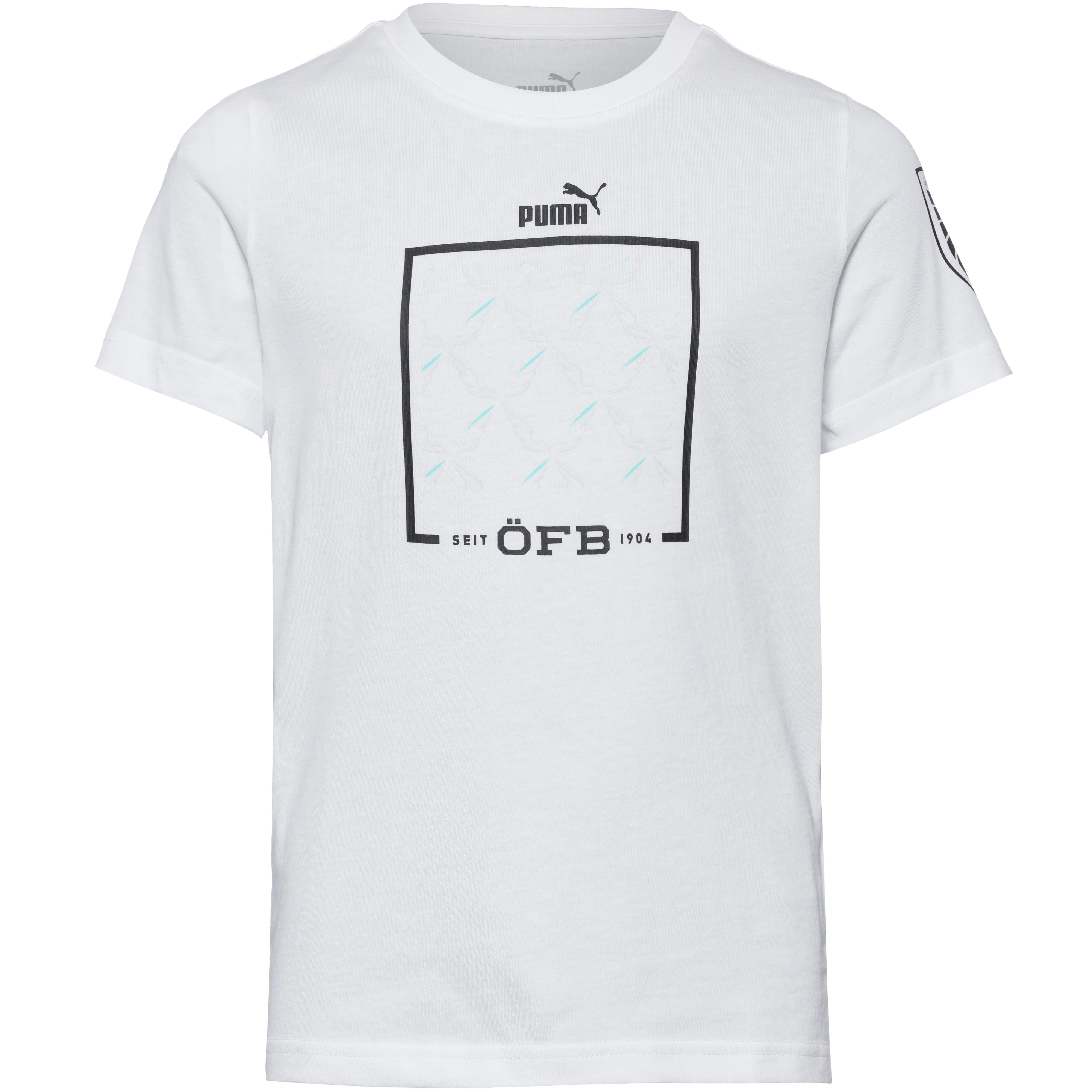 Kinder-Fanshirt mit ÖFB-Print auf der Vorderseite; Rundhalsausschnitt mit Nackenband; Vereinswappen am linken Ärmel; normale Passform; Material 100% Baumwolle.